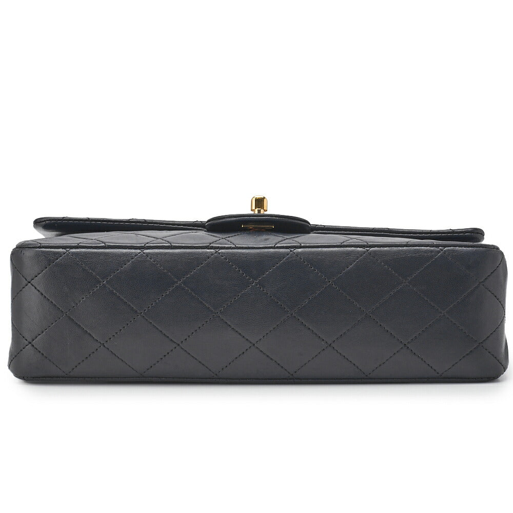 Gebrauchte Umhängetasche, Matelassé-Drehverschluss mit doppelter Klappe, Lammleder, Schwarz, goldfarbene Metallteile, gebraucht