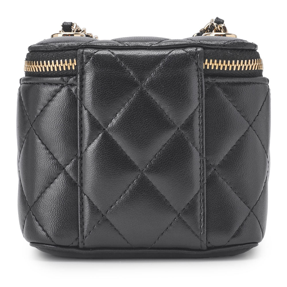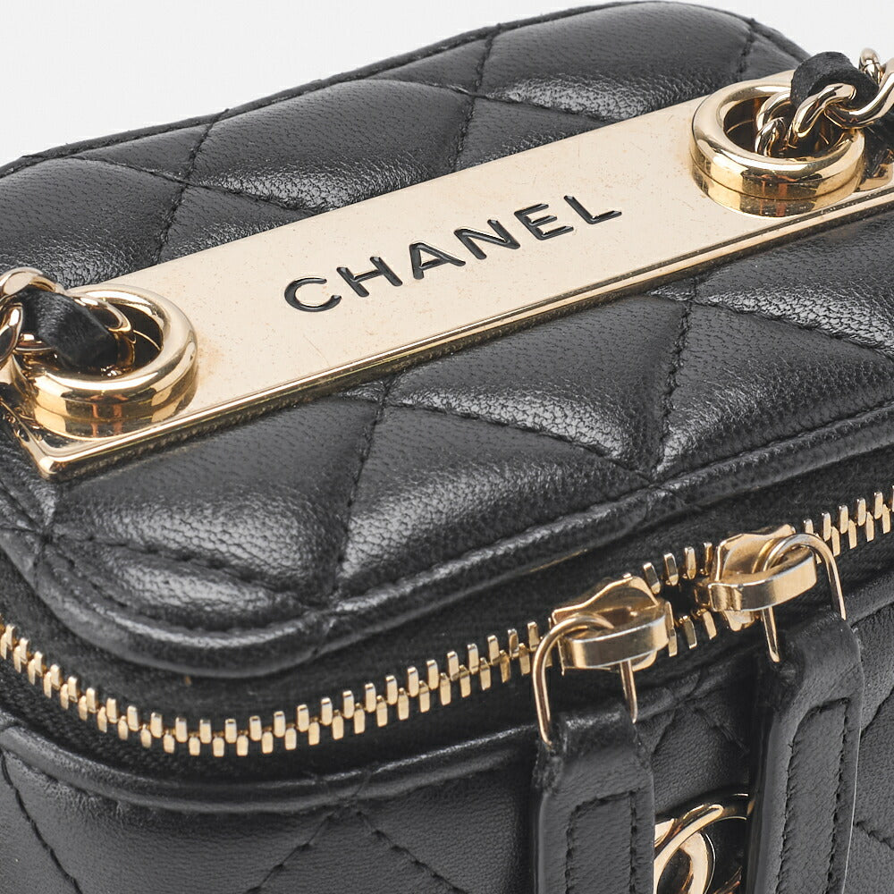 Erweitern Sie Ihre Accessoire-Auswahl mit der CHANEL Matelassé Vanity Chain Shoulder Lammleder Schwarz (Goldbeschläge) Damentasche. Dieses exquisite Stück vereint Luxus und Funktionalität und ist ein Must-have für jede modebewusste Frau.