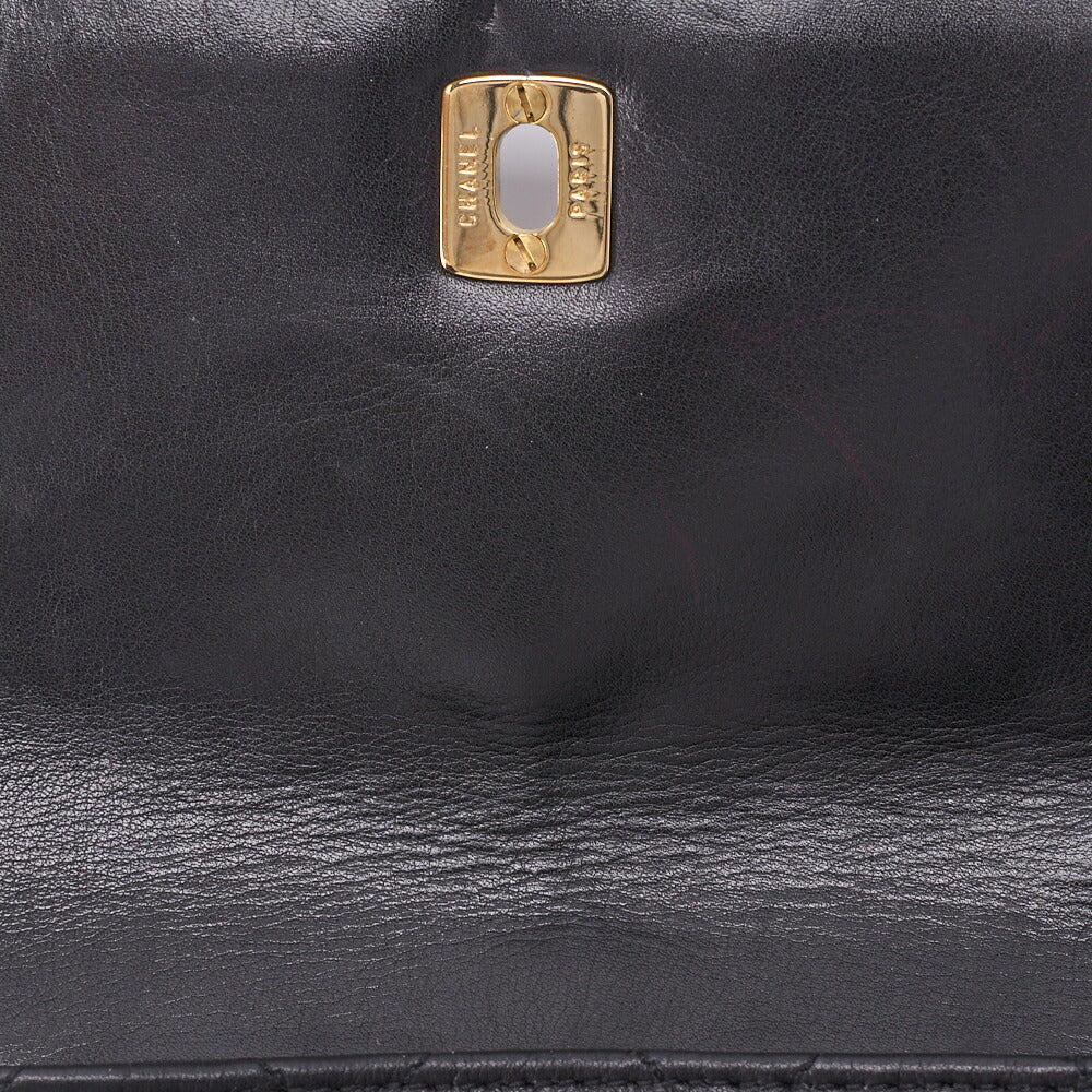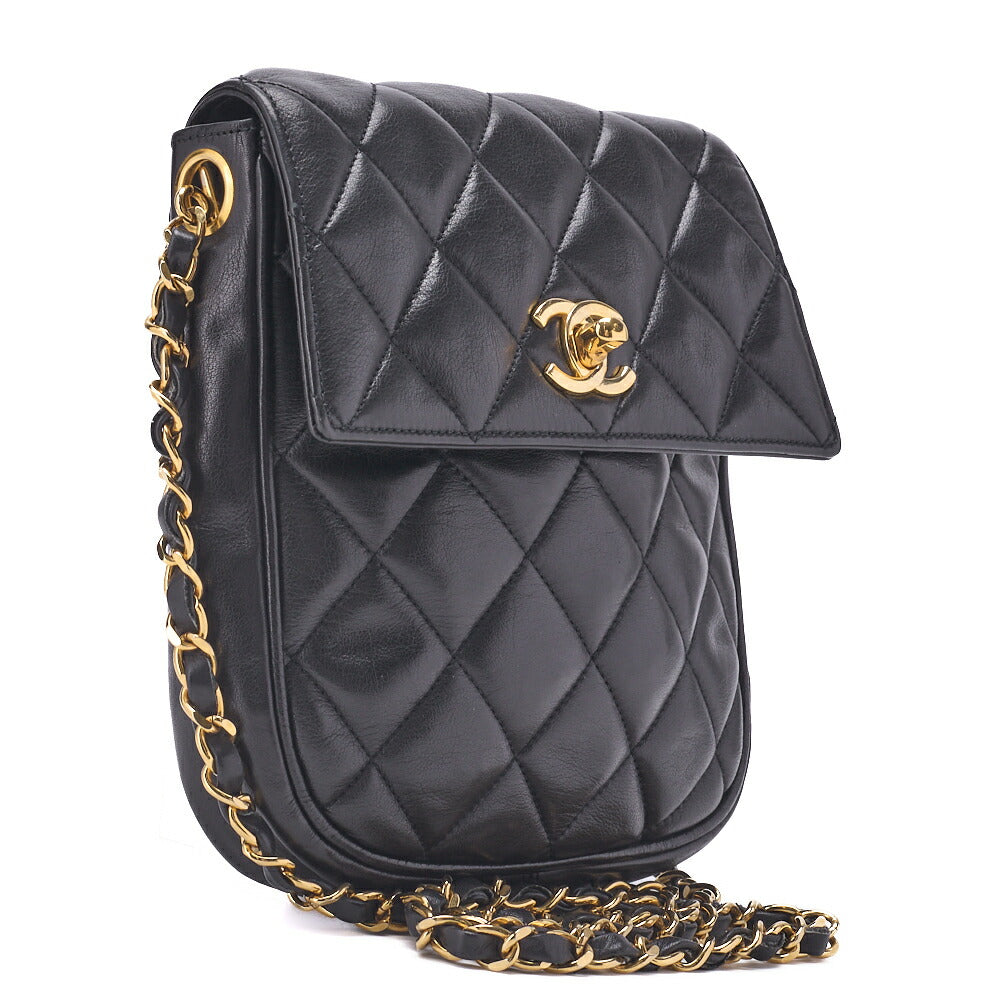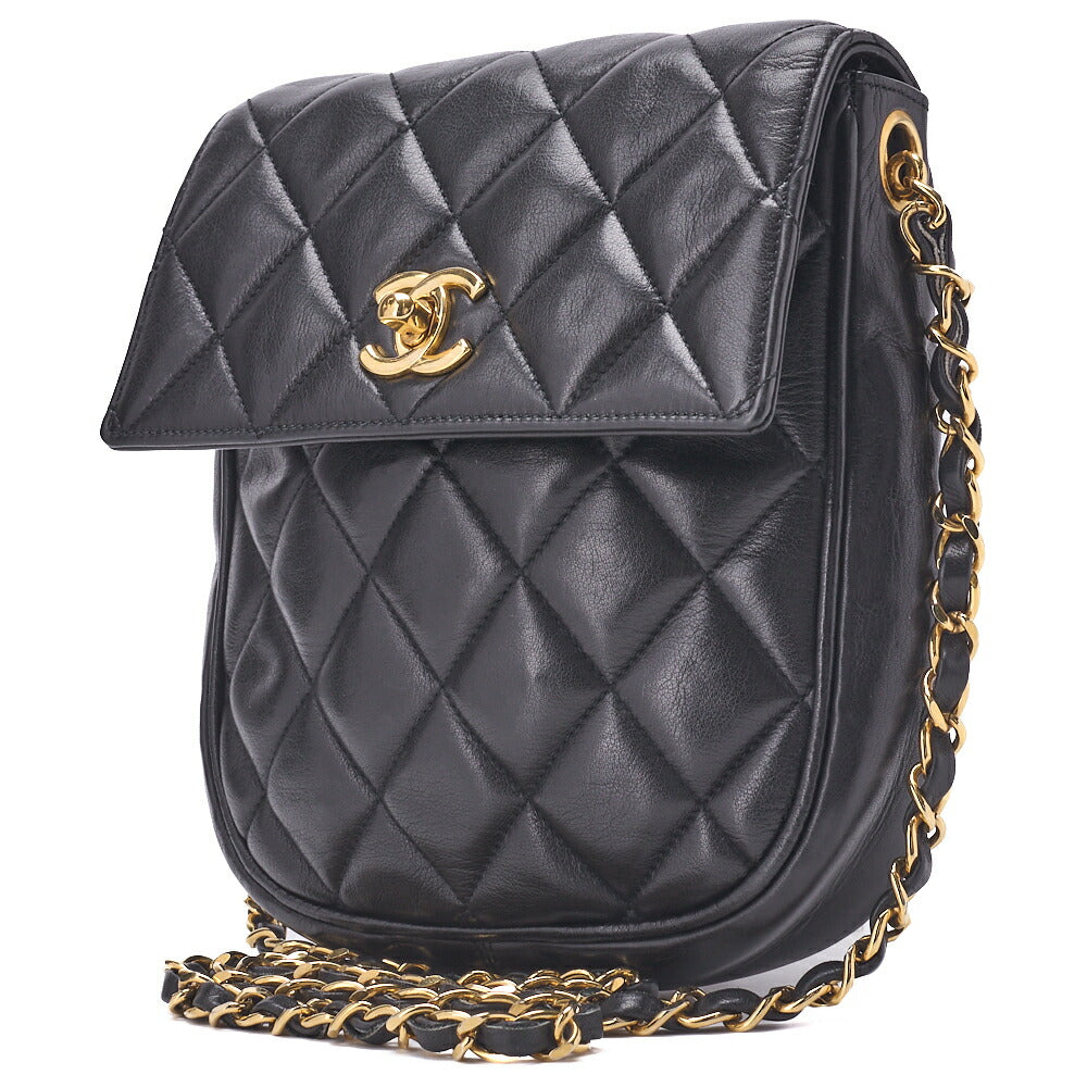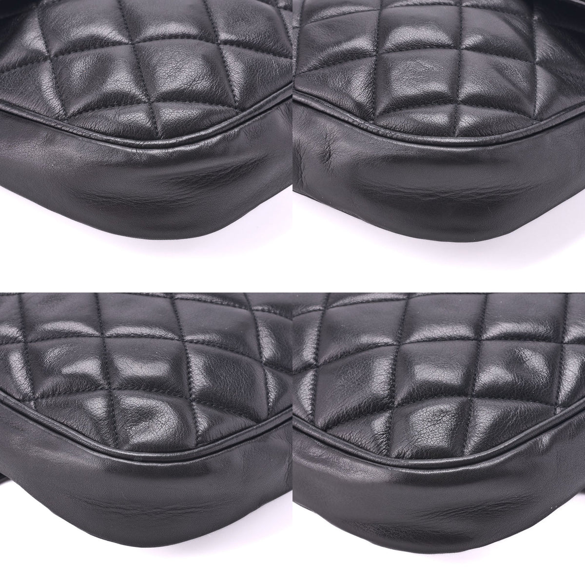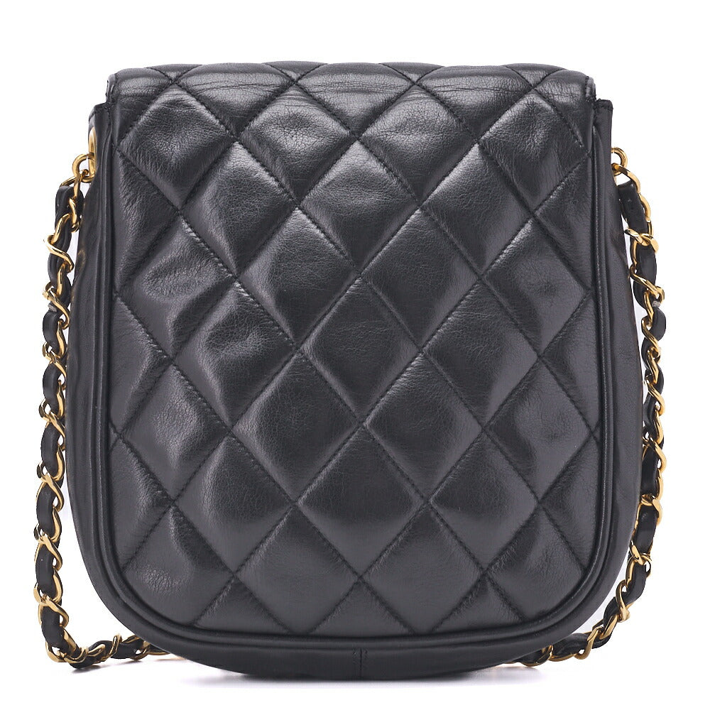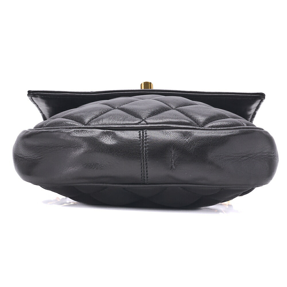 Pre-Owned Umhängetasche Matelassé Vertikal Gerade Klappe Kette Schulter Lammleder Schwarz Goldfarbene Hardware Pre-Owned