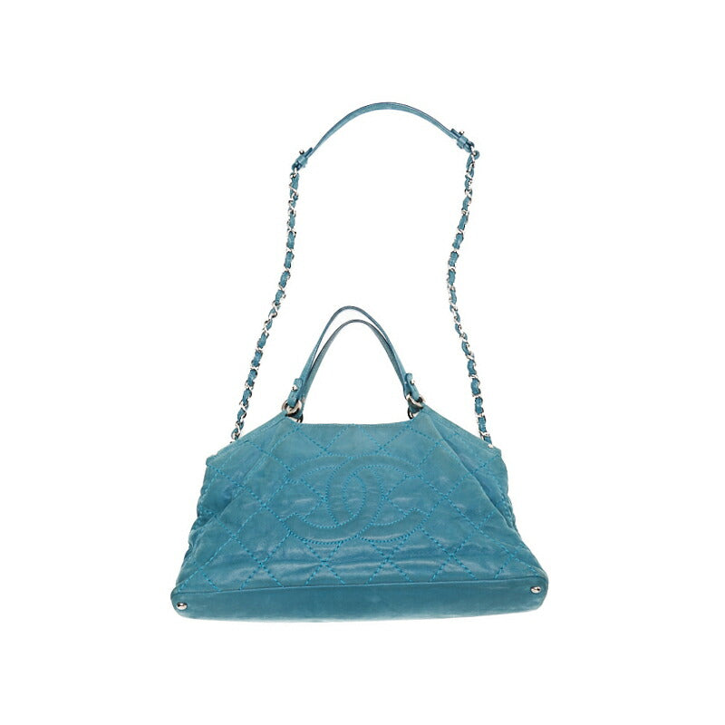 Gebrauchte Umhängetasche Matelasse Wild Stitch Coco Mark 2WAY Sparkle Leder Smaragdgrün Silberfarbene Hardware Gebraucht