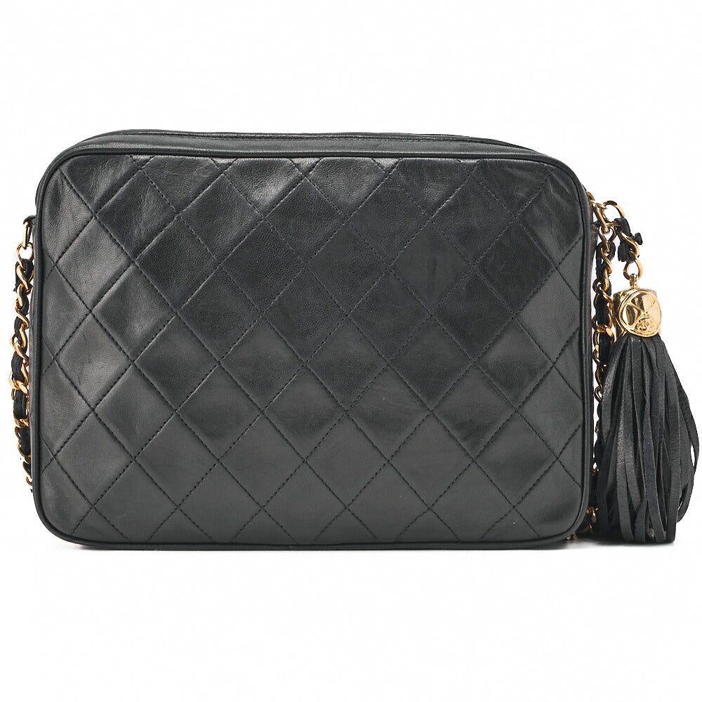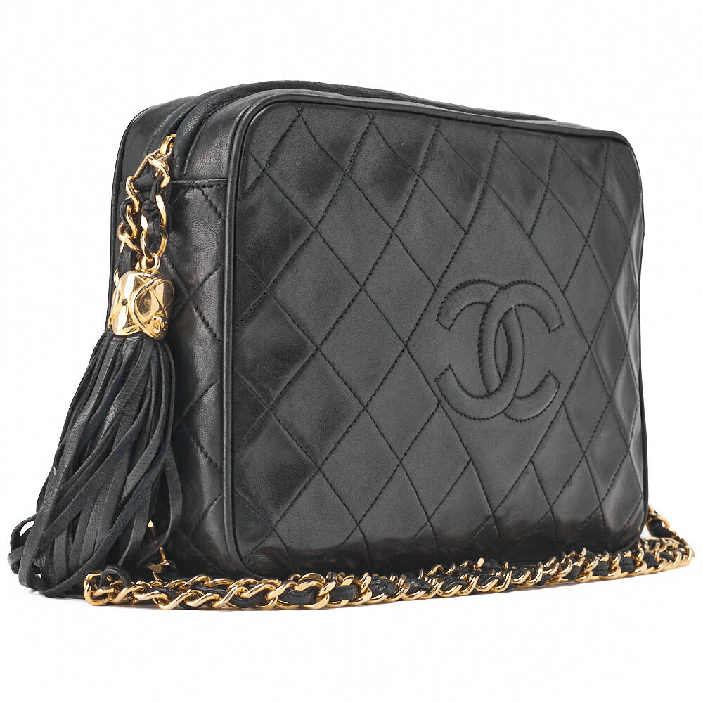 Gebrauchte Matlasse Coco Mark Fransenkette Schultertasche Lammleder Schwarz Goldfarbene Hardware, Gebraucht