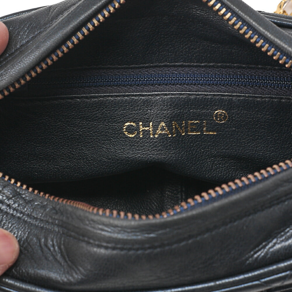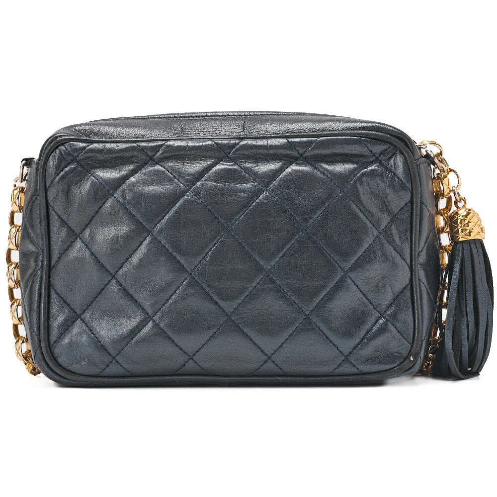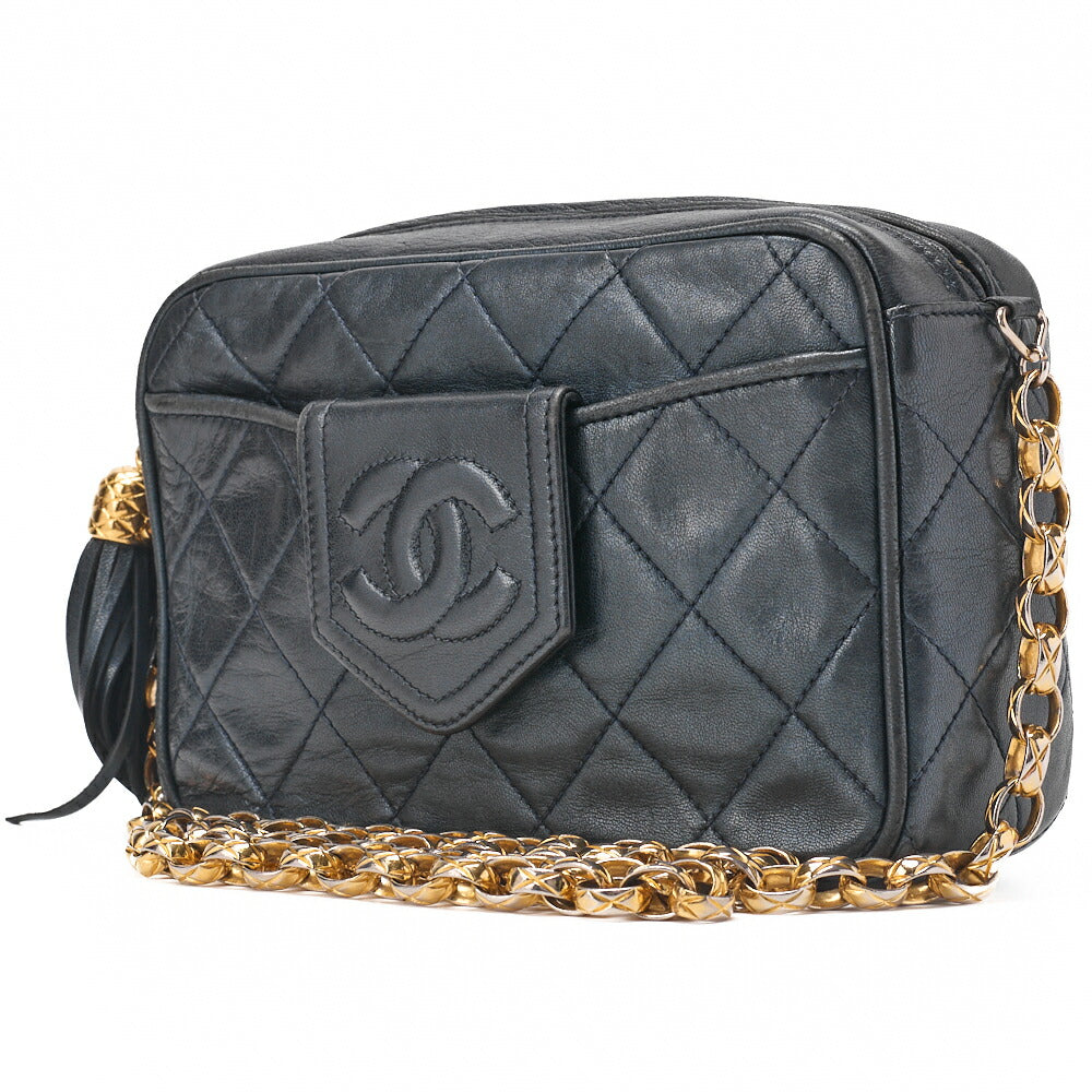 Pre-Owned Matlasse Coco Mark with Fringe Bijou Chain Shoulder Lambskin Navy (Gold Fittings) Women's Bag High Brand