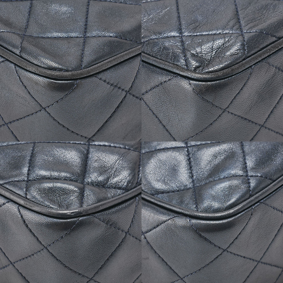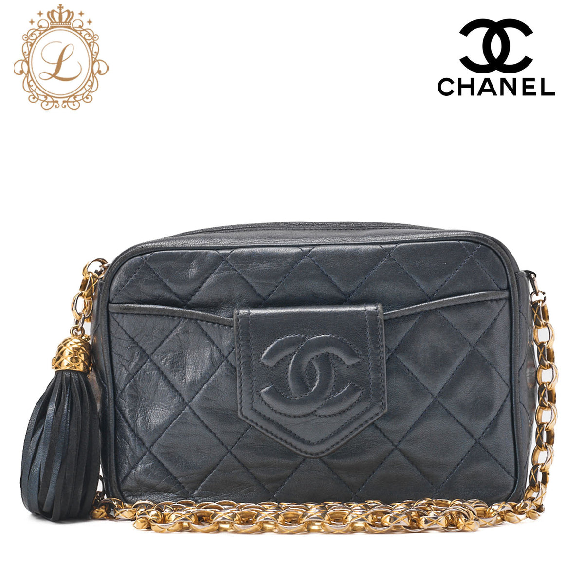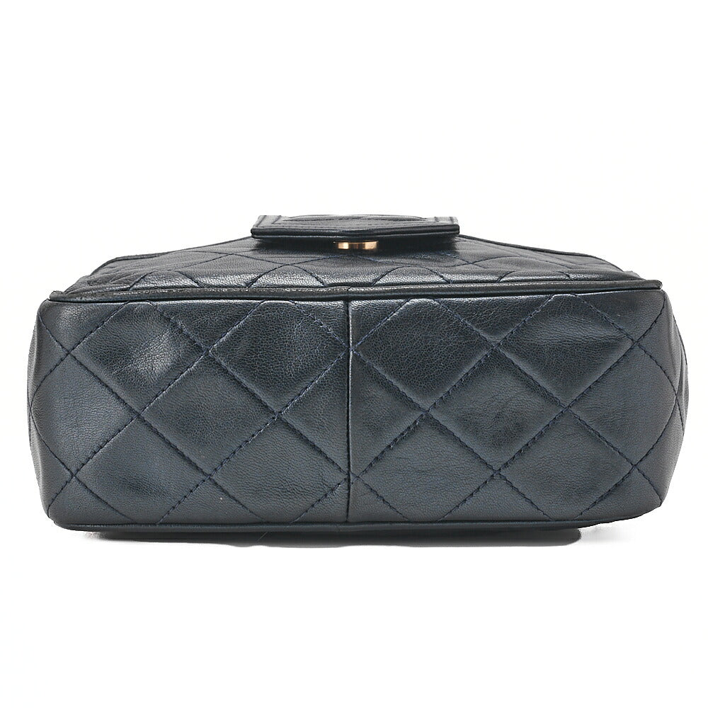 Pre-Owned Matlasse Coco Mark with Fringe Bijou Chain Shoulder Lambskin Navy (Gold Fittings) Women's Bag High Brand