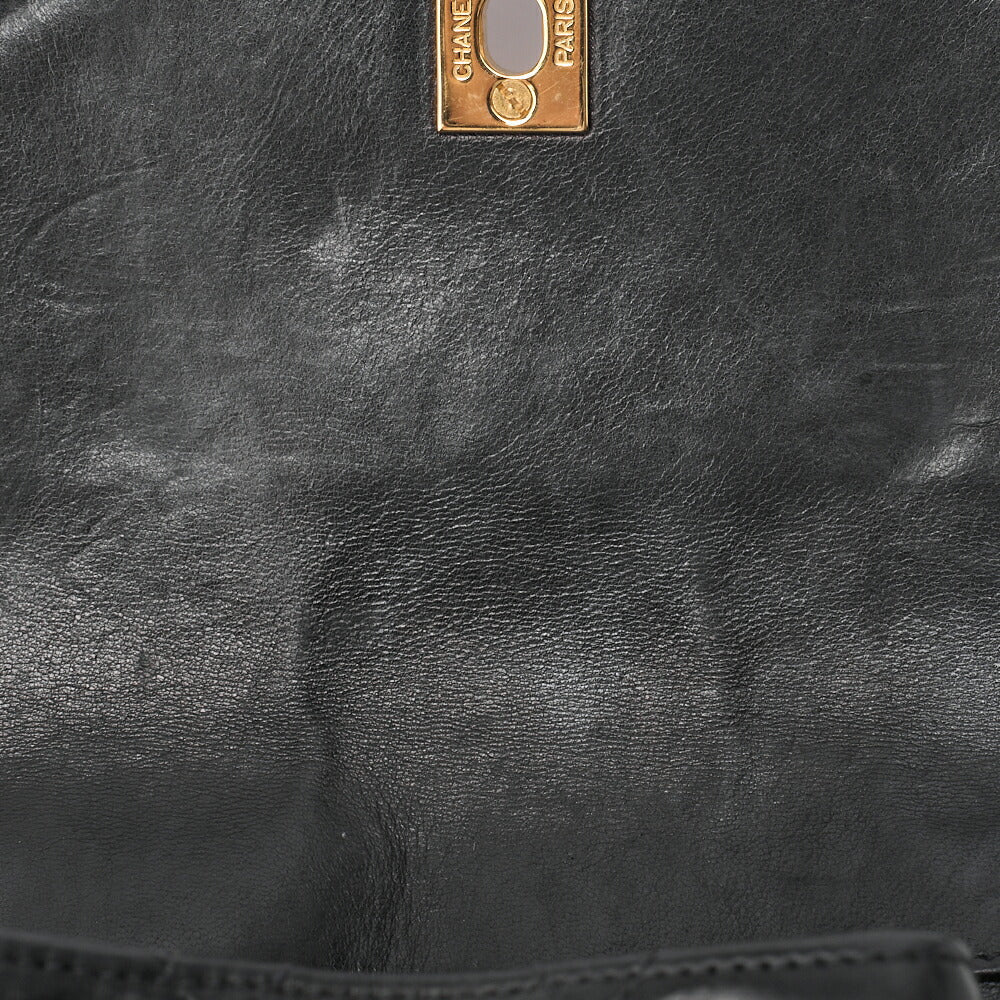 Gebrauchter Matlasse Rucksack mit Außenklappe und Drehverschluss und Kette aus Lammleder in Schwarz und Goldtönen, Gebraucht