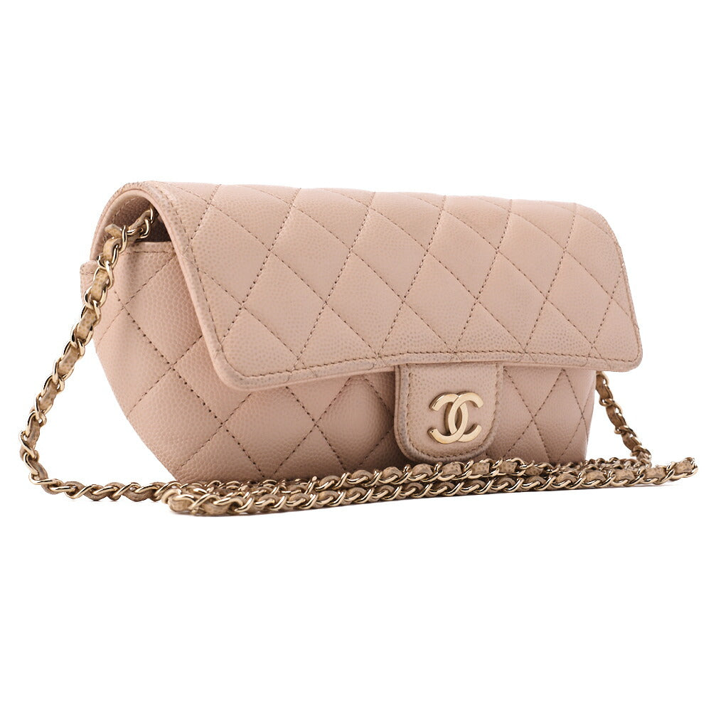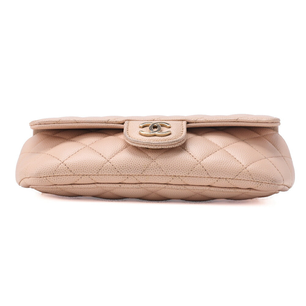 CHANEL Matrasse Shoulder Bag Caviar Skin Glasses Case Beige Silver-Tone Hardware by CHANEL offers timeless luxury and practical storage for everyday elegance.