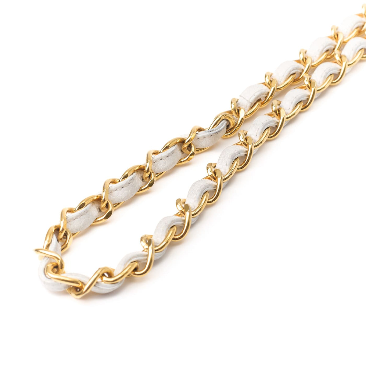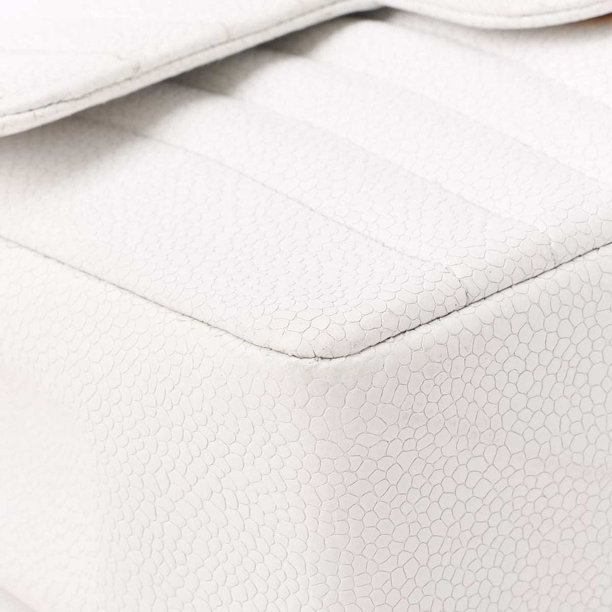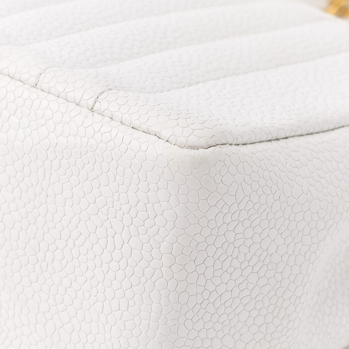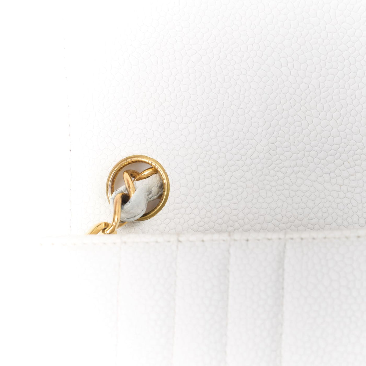 Pre-Owned Mini Mademoiselle Schultertasche mit Drehverschluss und Kette Caviar Skin Weiß Goldfarbene Hardware Pre-Owned