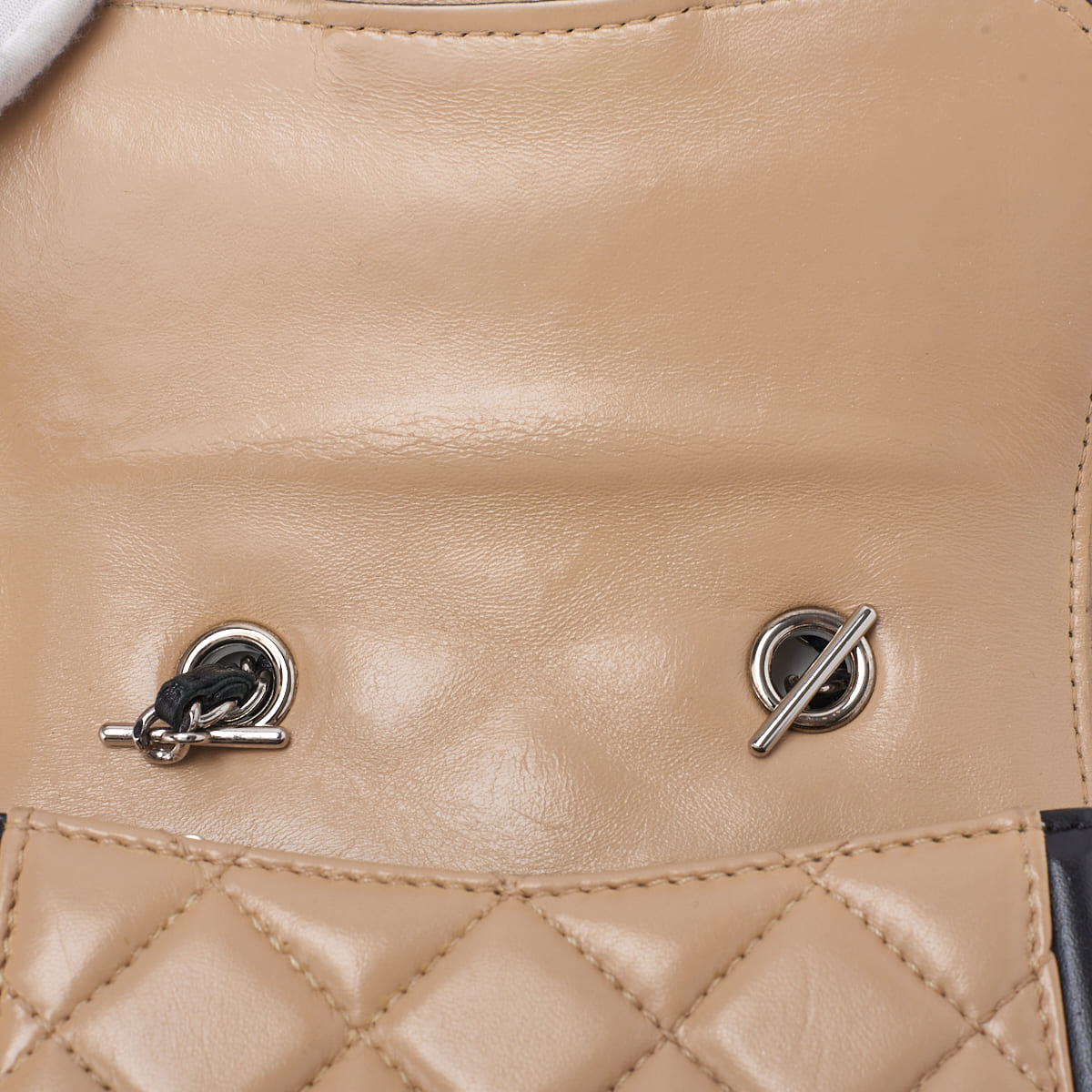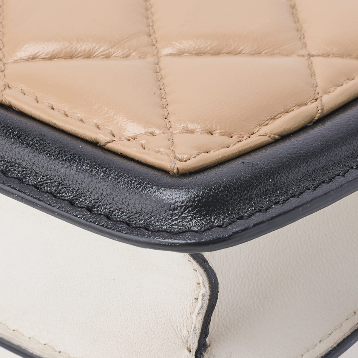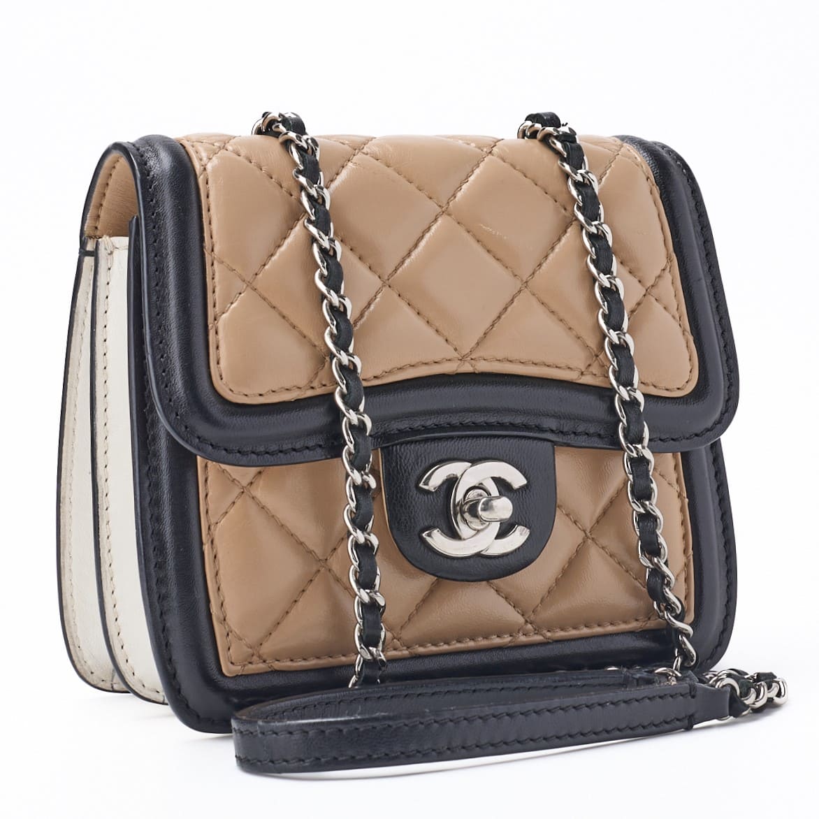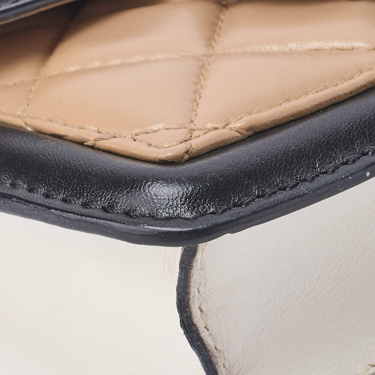 Gönnen Sie sich Luxus mit der CHANEL Mini Matelassé Turn Lock Chain Schultertasche . Sie ist meisterhaft aus geschmeidigem Lammleder in einer atemberaubenden Beige-Schwarz-Kombination mit eleganten Goldbeschlägen gefertigt. Diese exquisite Mini-Schultertasche ist nicht nur ein Accessoire; sie ist ein Statement-Stück, das Raffinesse und Stil verkörpert.