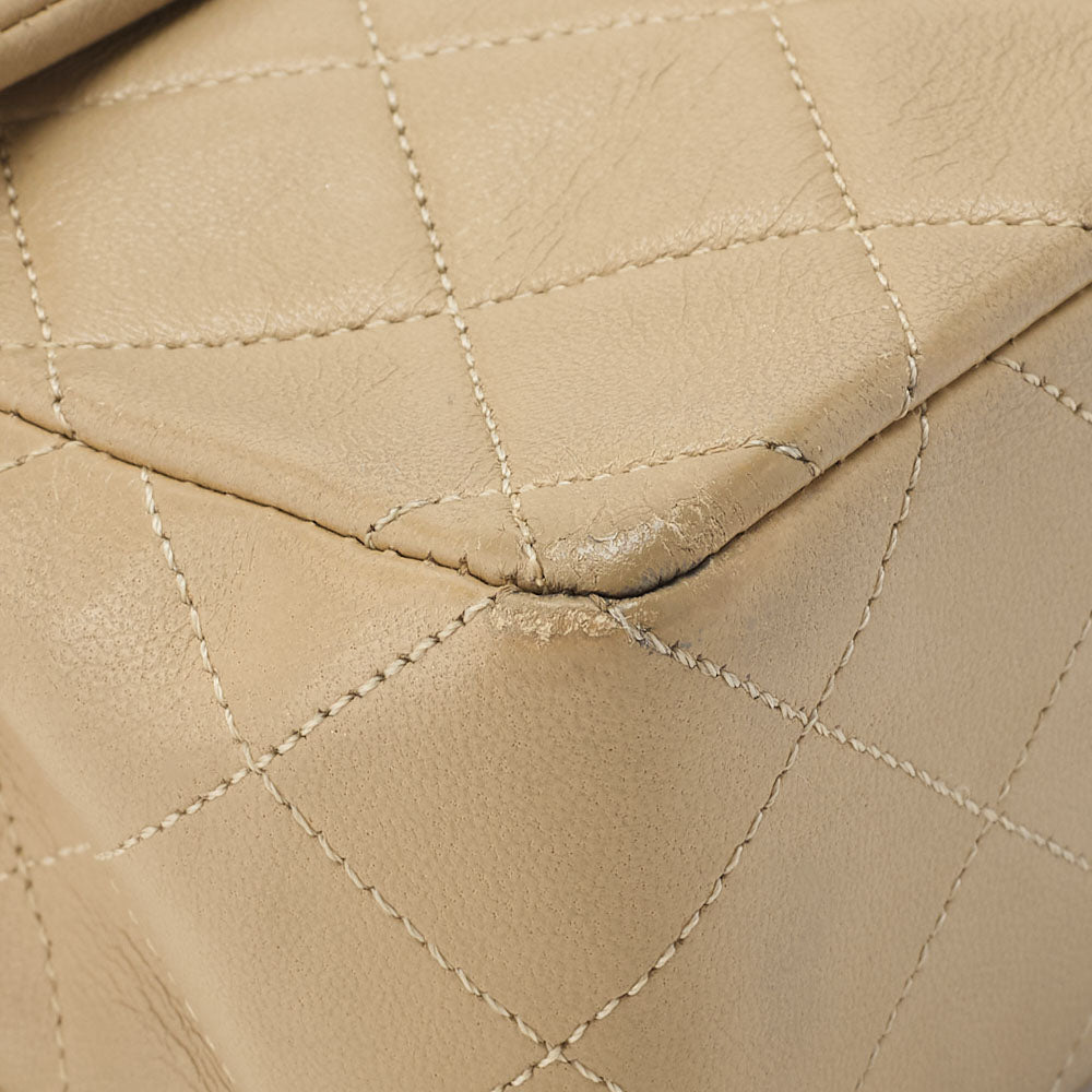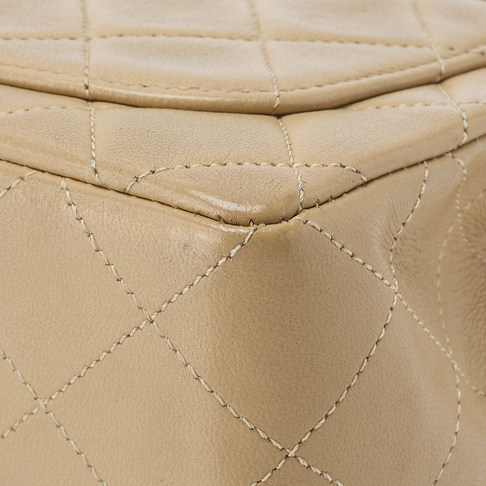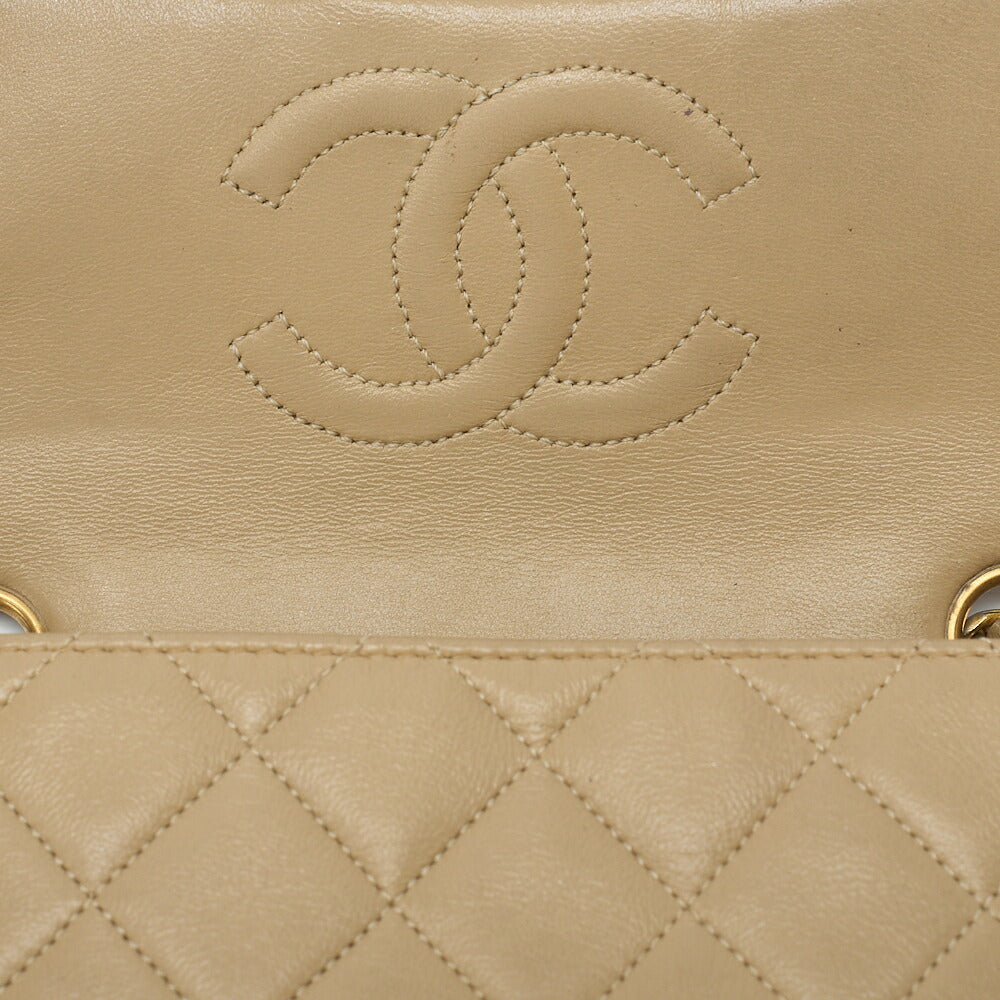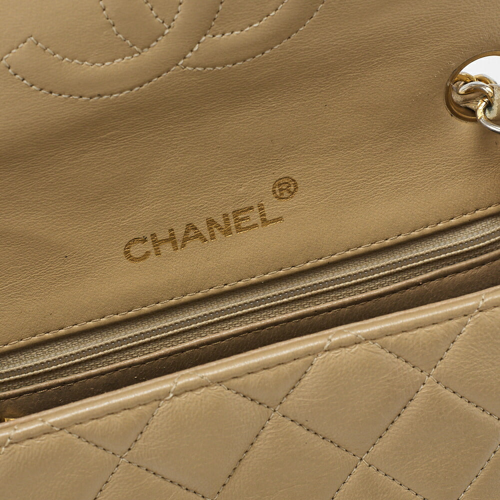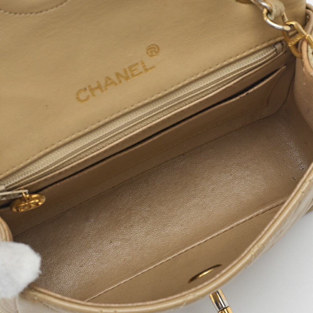 Pre-Owned Mini Schultertasche Matelassé Drehverschluss Kette Lammleder Beige Goldfarbene Hardware Pre-Owned