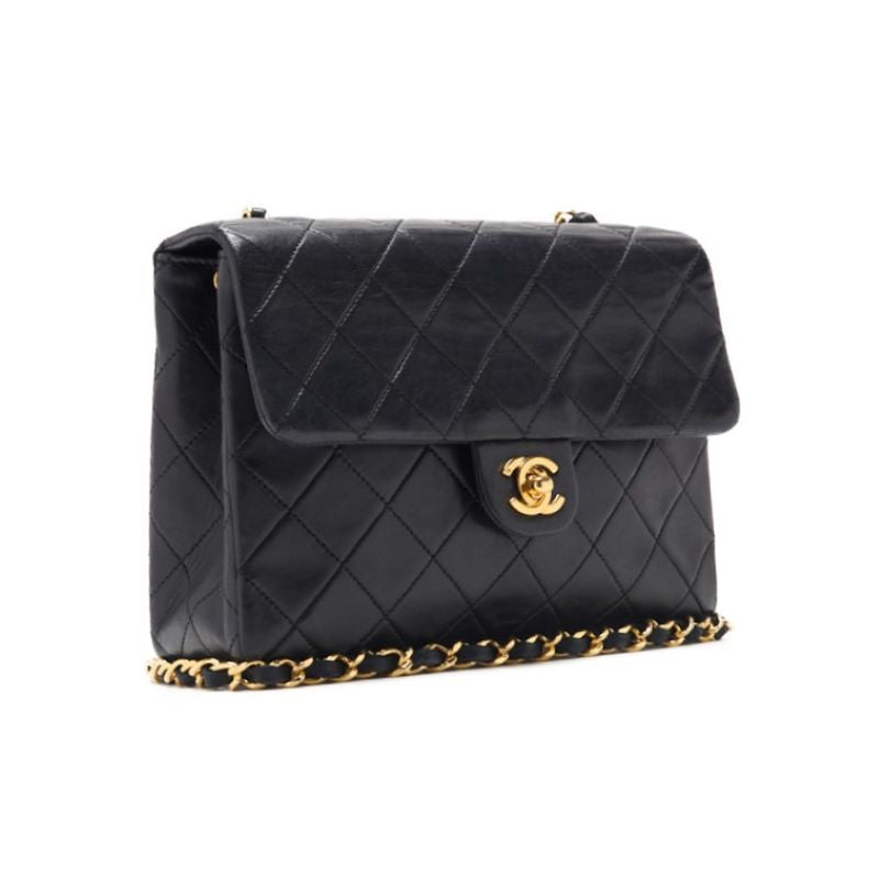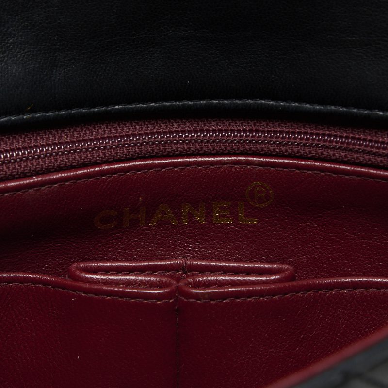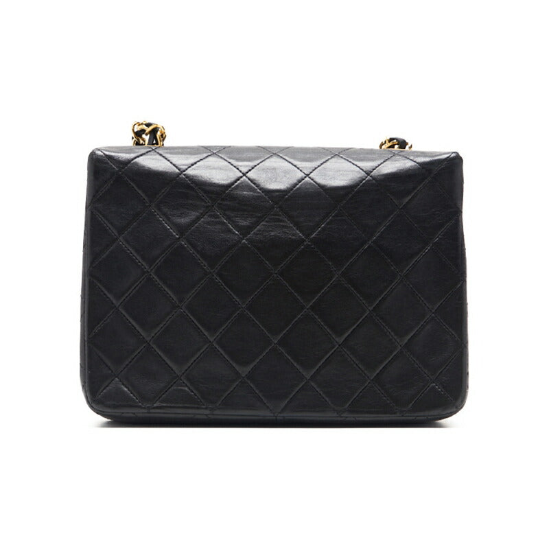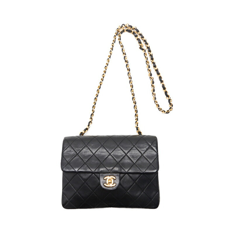 Pre-Owned Mini Schultertasche Matelassé Drehverschluss Kette Schulter Lammleder Schwarz Goldfarbene Hardware Pre-Owned
