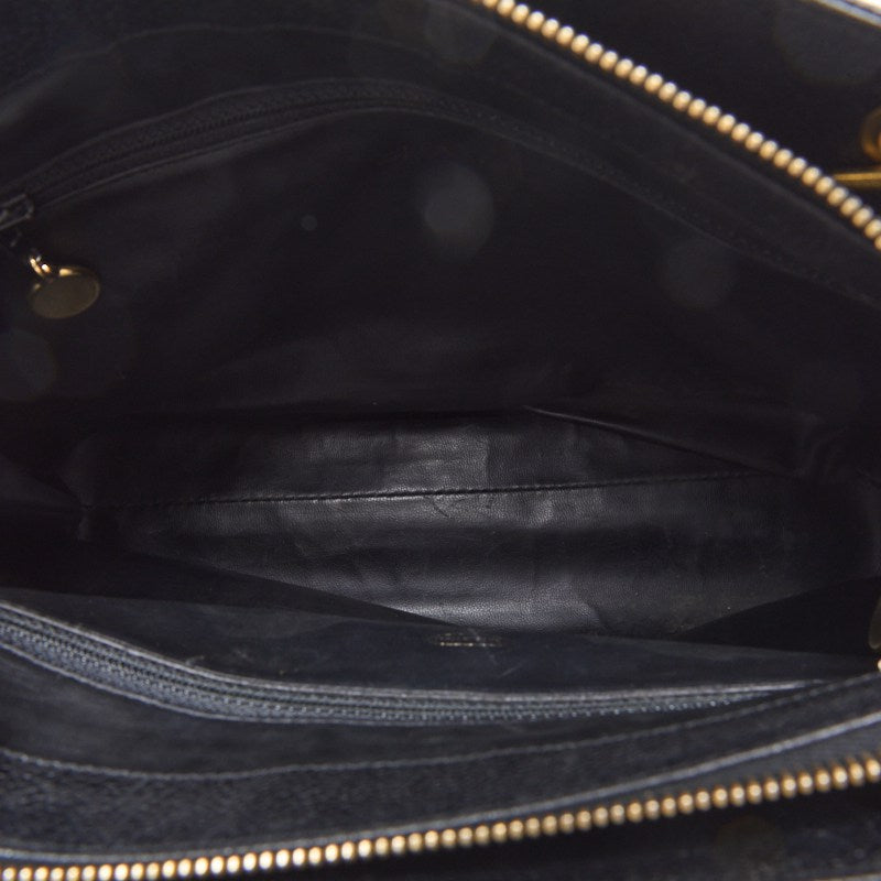 Gebrauchte Tragetasche, Außenklappe, Doppelte Kette an der Schulter, Lammleder, Schwarz, Goldfarbene Metallteile, Gebraucht