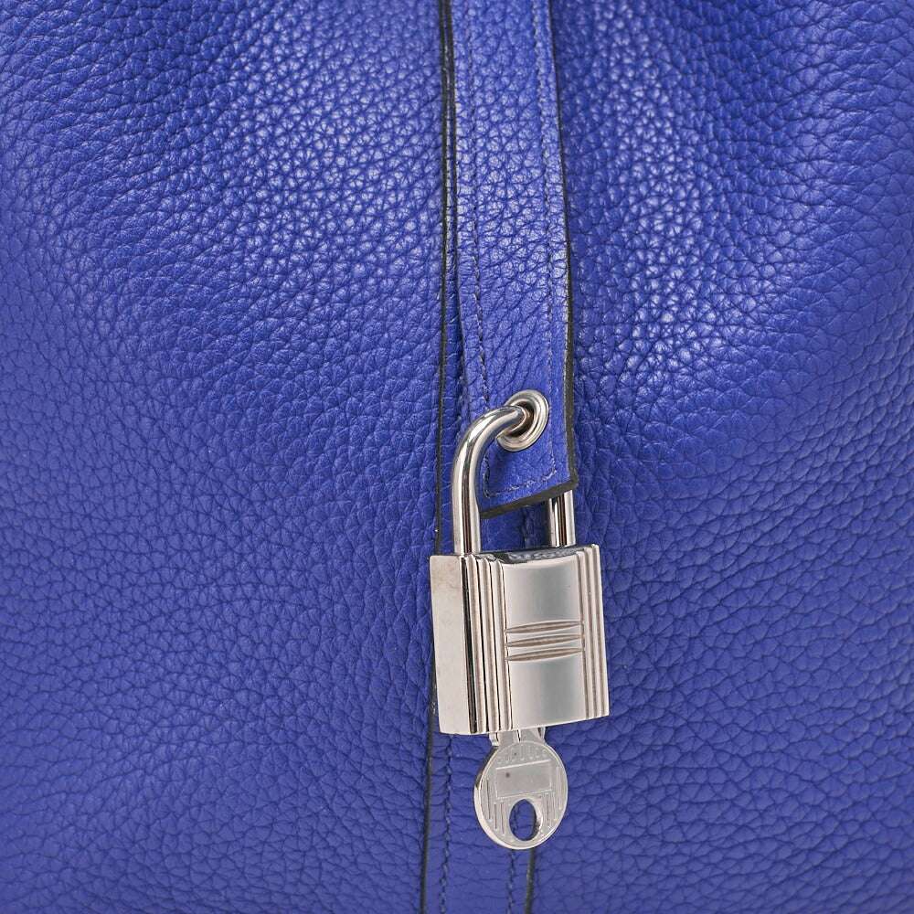 Gebrauchte Picotin Lock MM Handtasche, Tryon Clemence, Blue Electric, silberfarbene Metallteile, gebraucht