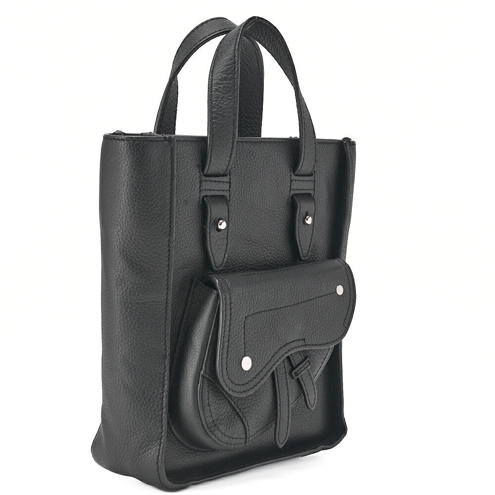 Pre-Owned Homme Saddle Handbag Mini, Leder, Schwarz, Silberfarbene Hardware, Pre-Owned