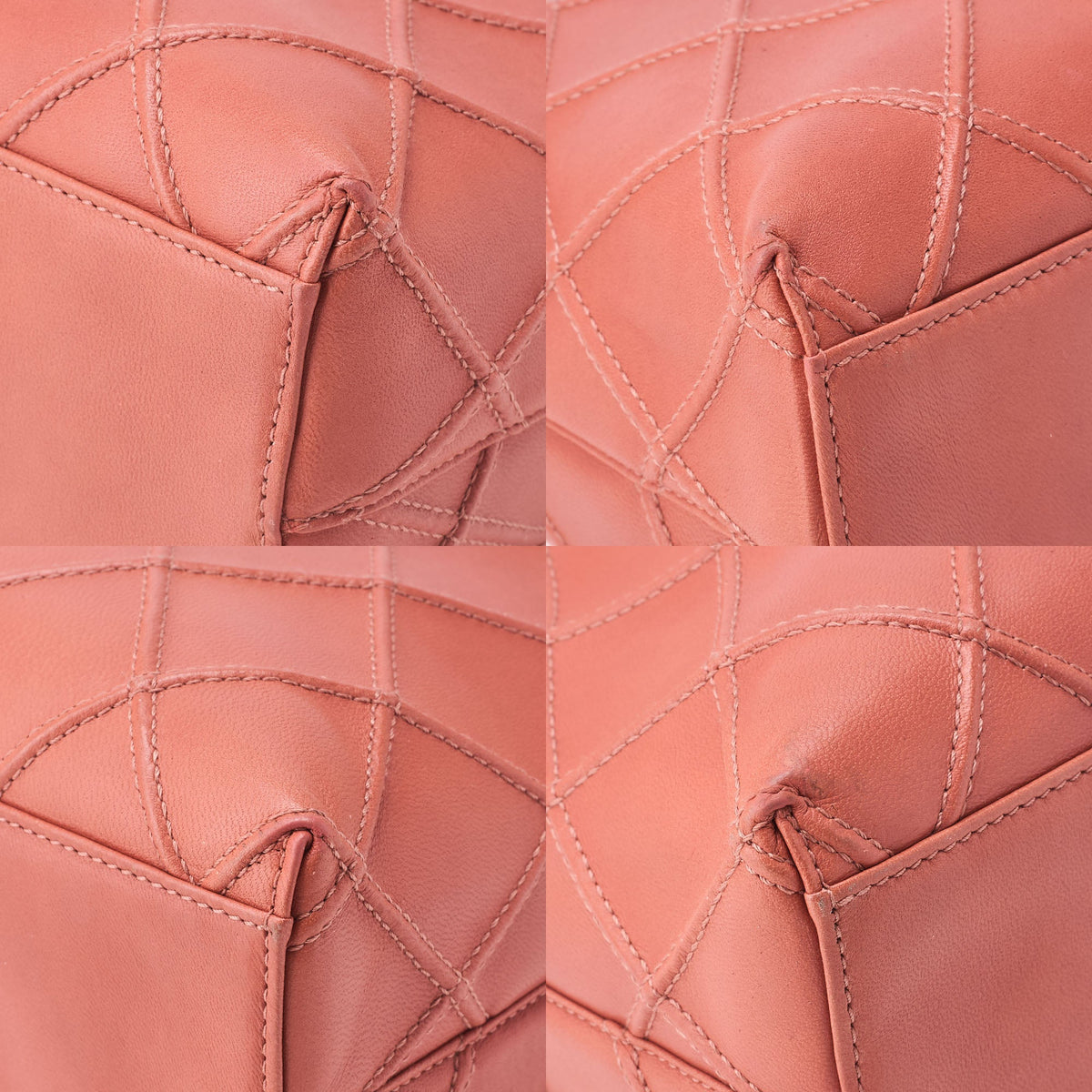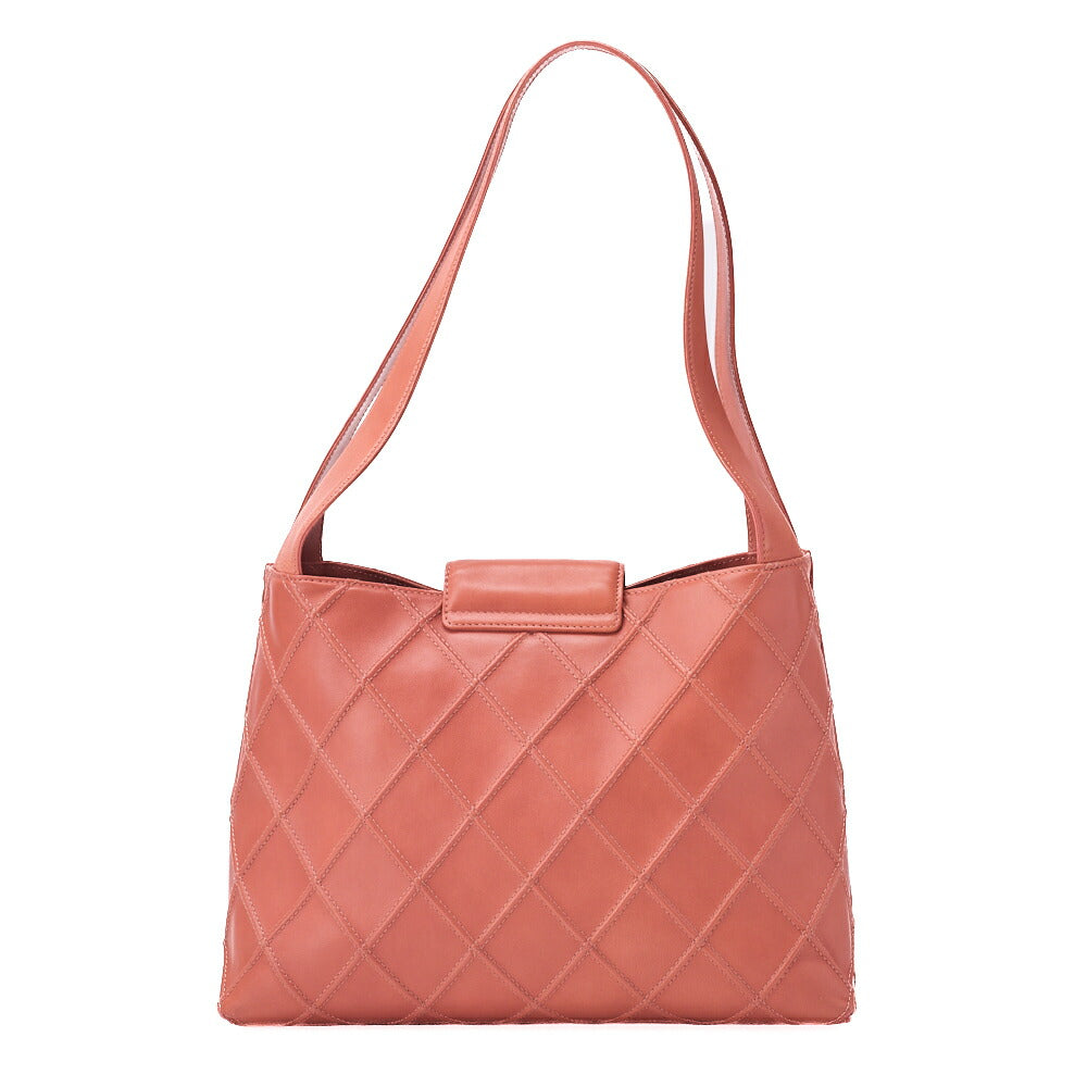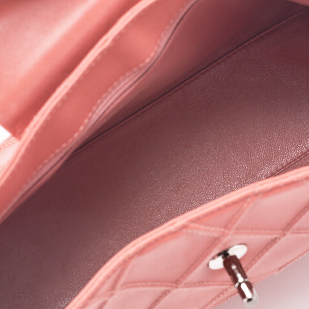 Wir präsentieren die exquisite CHANEL Schultertasche Bicolore Turn Lock aus luxuriösem Lammleder in einem atemberaubenden Lachsrosa mit eleganten silbernen Beschlägen. Dieses gebrauchte Schmuckstück ist nicht nur eine Tasche; es ist ein Statement-Stück, das Funktionalität und Eleganz vereint.