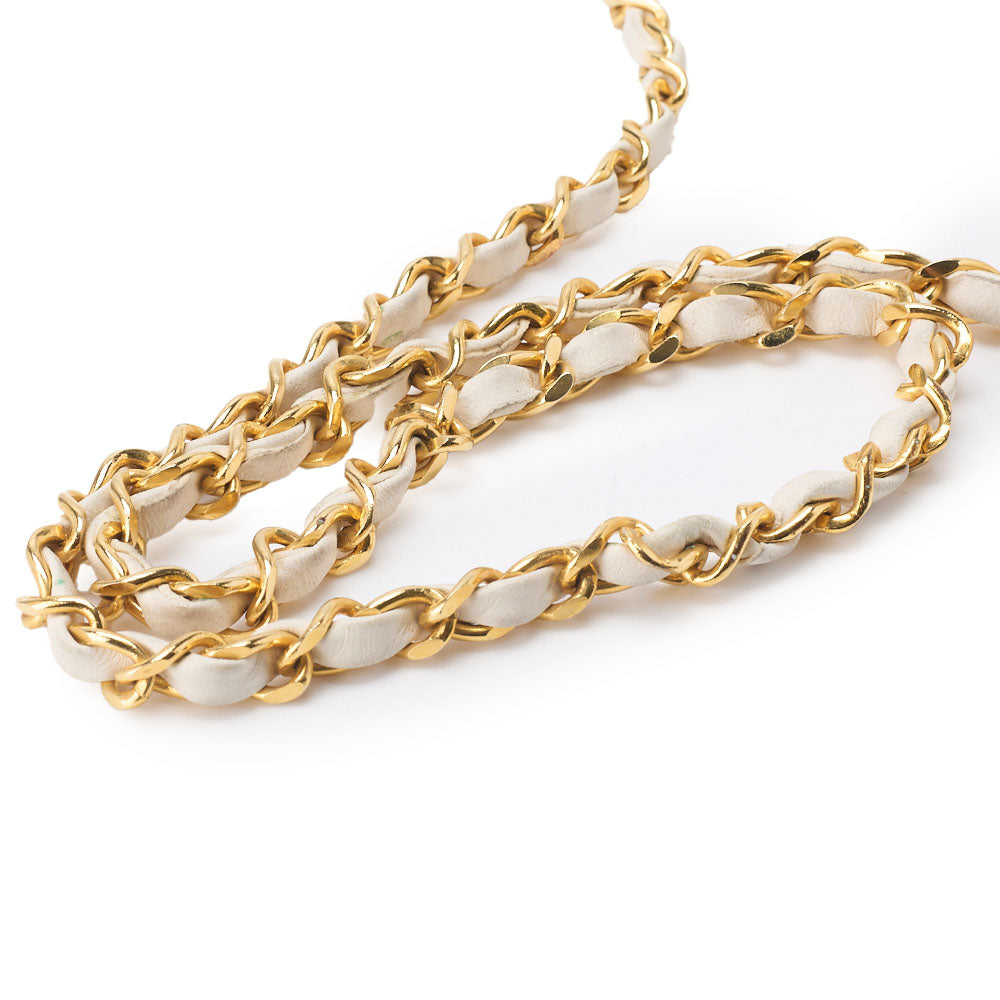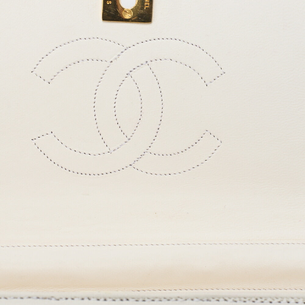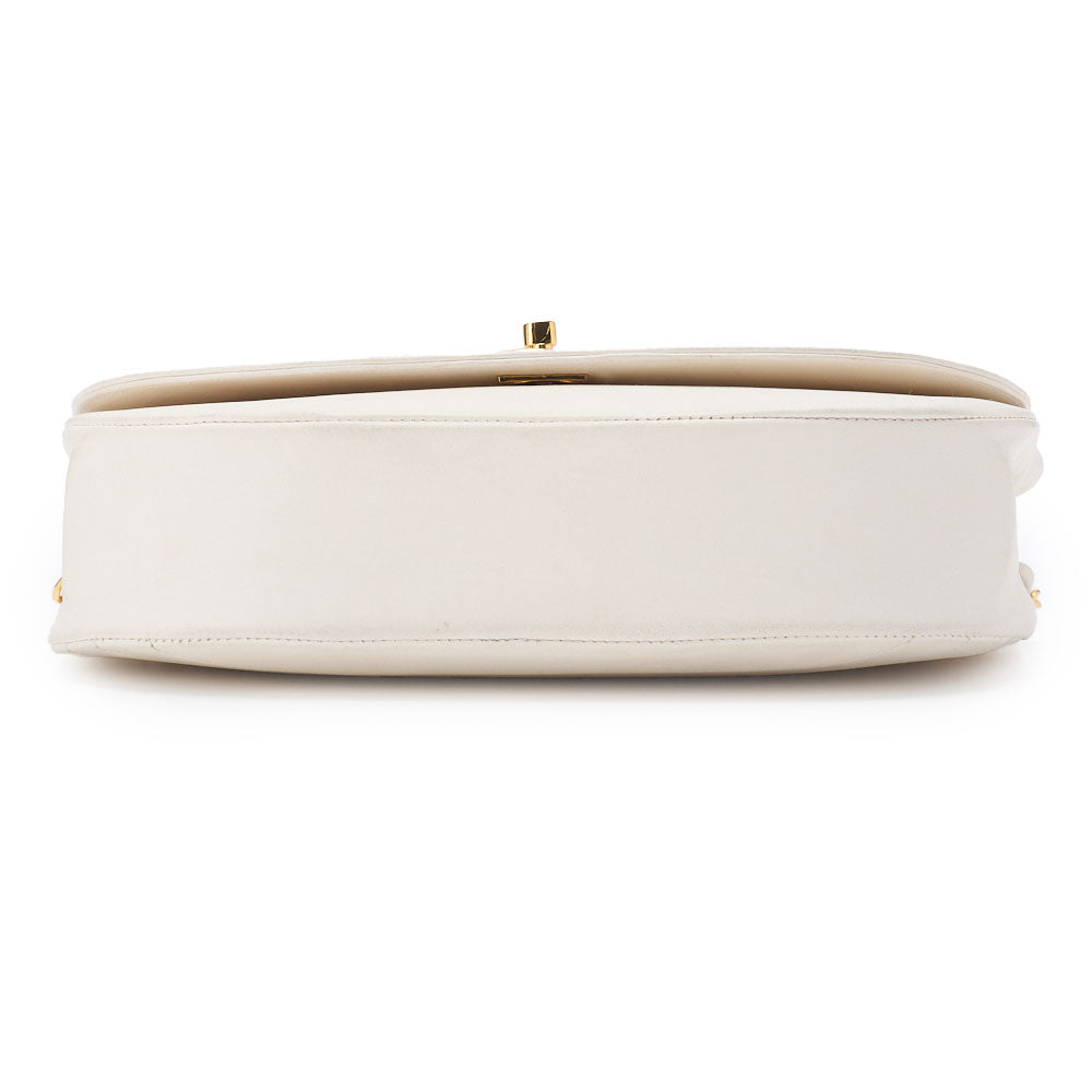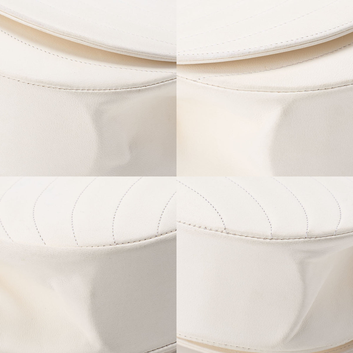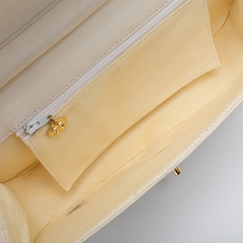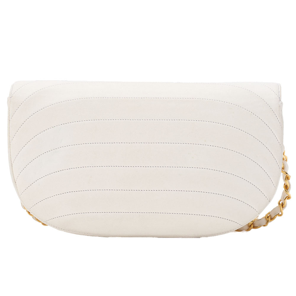 Pre-Owned Schultertasche Border Stitch Half Moon Lammleder Weiß Gold-Ton Hardware Pre-Owned