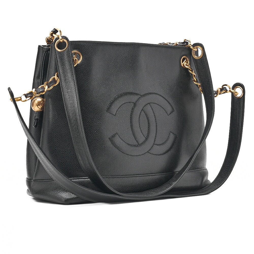 Gebrauchte Umhängetasche Coco Mark Ball Charm Caviar Skin Schwarz Goldfarbene Hardware, Gebraucht