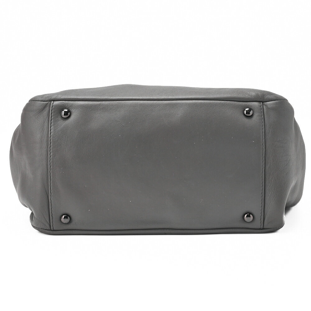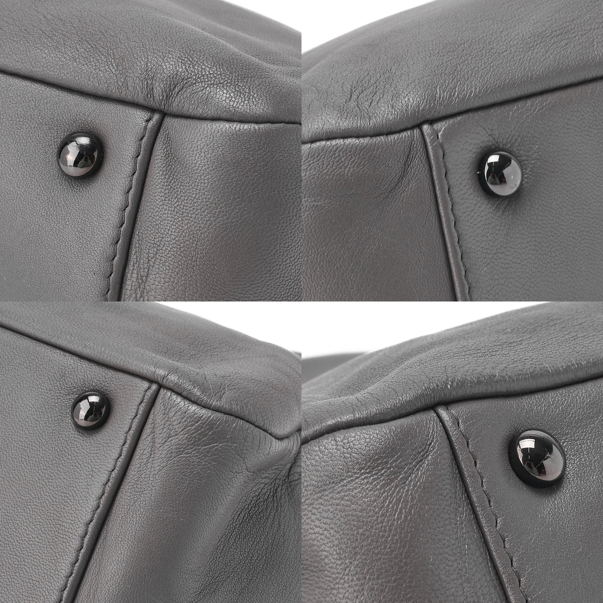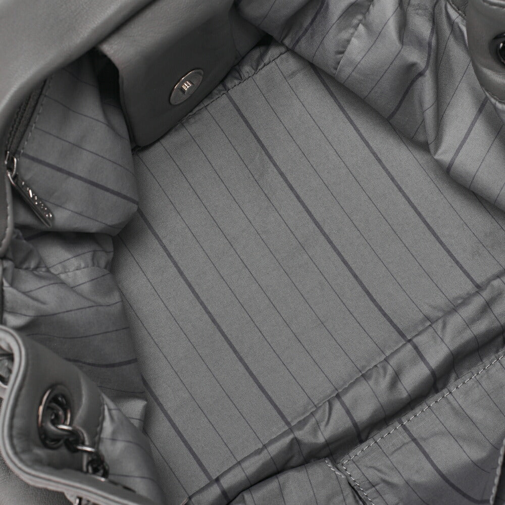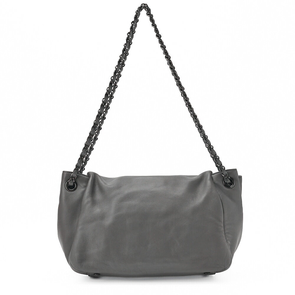 Pre-Owned Schultertasche Coco Mark Nietenbesetzte Full Flap Lammleder Grau Goldfarbene Hardware Pre-Owned