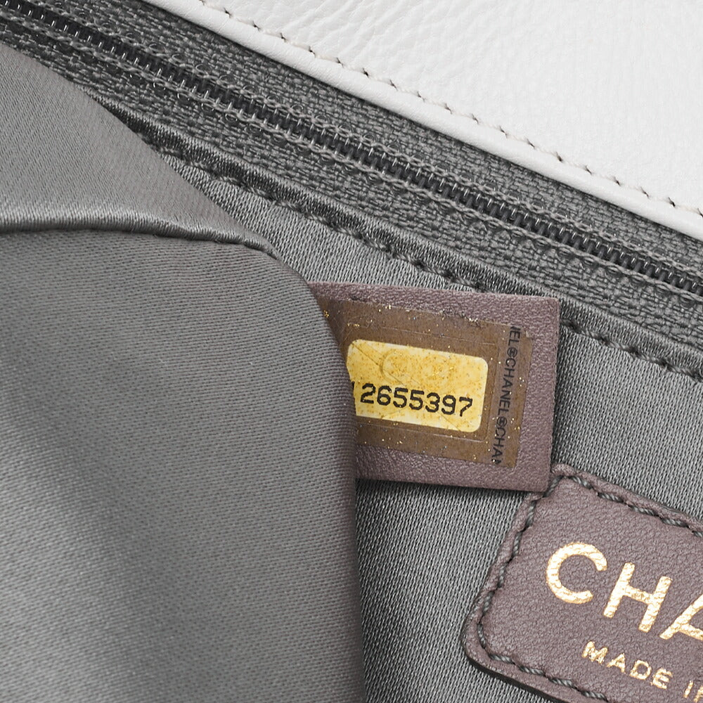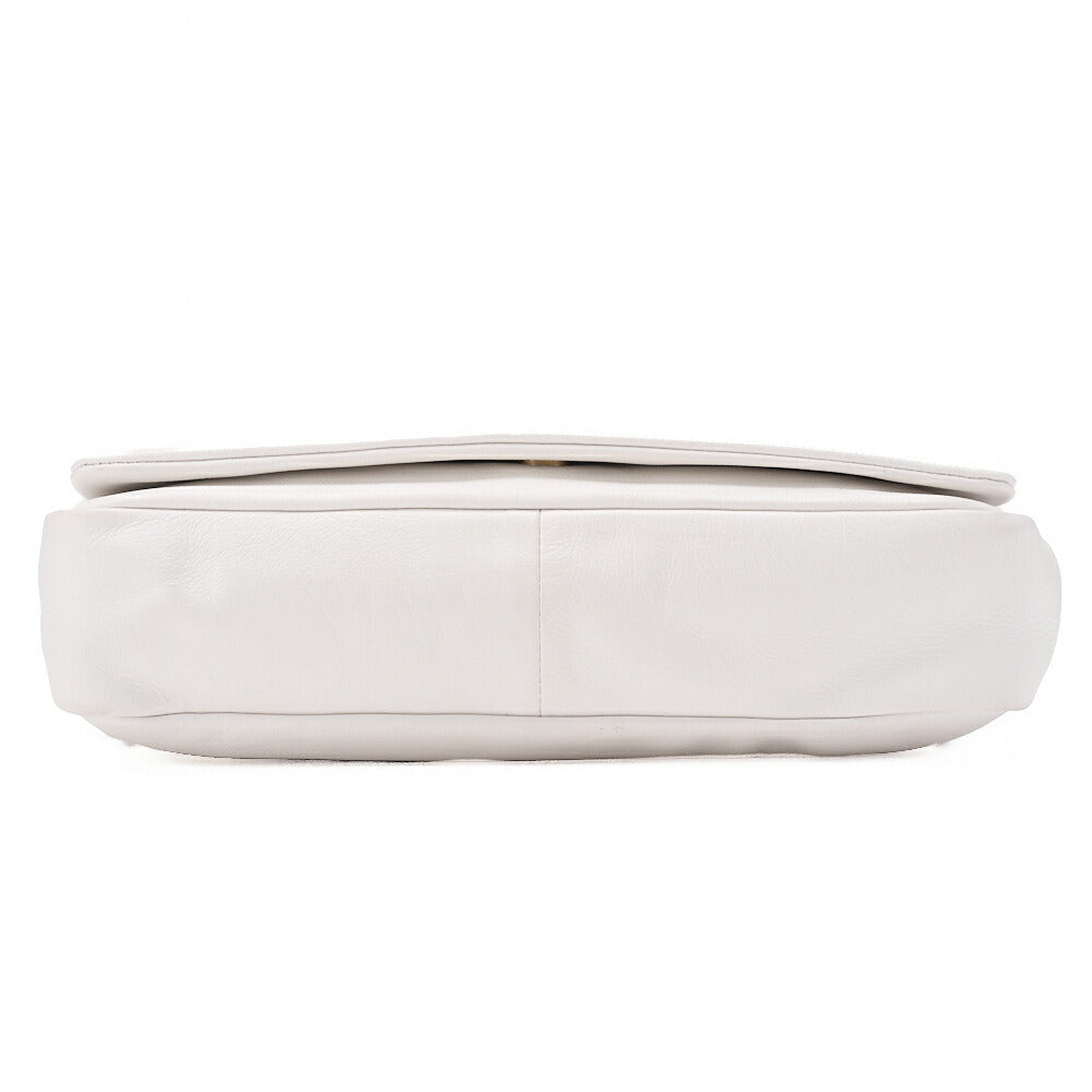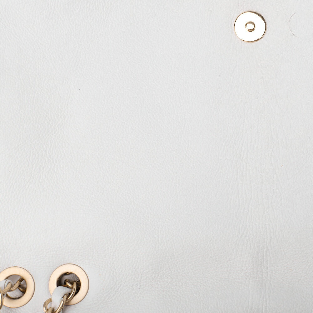 Pre-Owned Schultertasche Coco Mark Nietenbesetzte Full Flap Leder Weiß Goldfarbene Hardware Pre-Owned