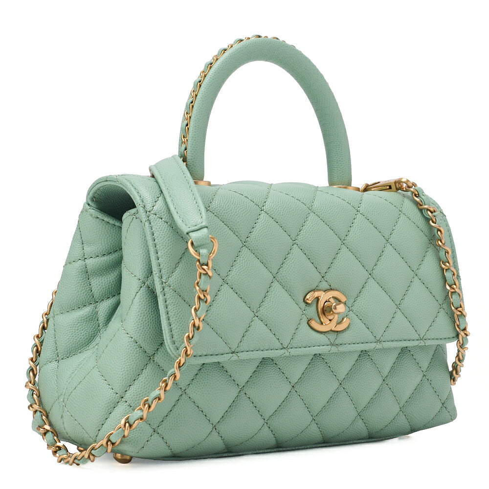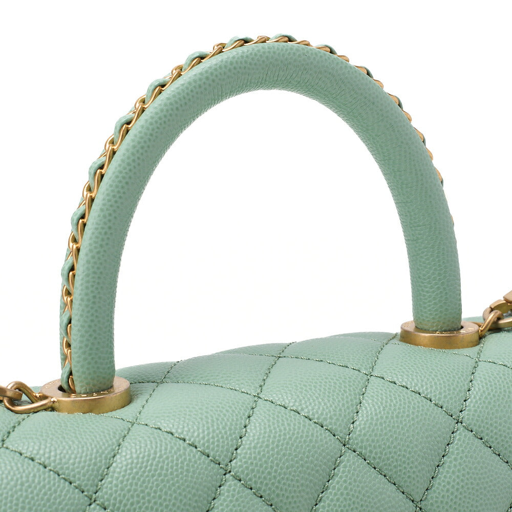 Gebrauchte Umhängetasche Handtasche Matlasse Coco Handle 2WAY Caviar Skin Grün Goldfarbene Hardware, Gebraucht