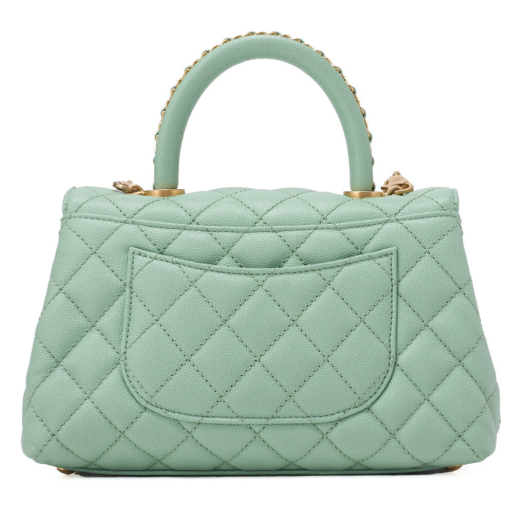 Entdecken Sie die luxuriöse CHANEL Schultertasche Matlasse Coco Handle 2WAY , die Eleganz und Vielseitigkeit für jeden Anlass bietet. Diese exquisite Handtasche aus hochwertigem Caviar Skin besticht durch ihren atemberaubenden Grünton, ergänzt durch goldene Metallbeschläge, und ist ein Statement-Piece, das Ihren Stil mühelos unterstreicht.