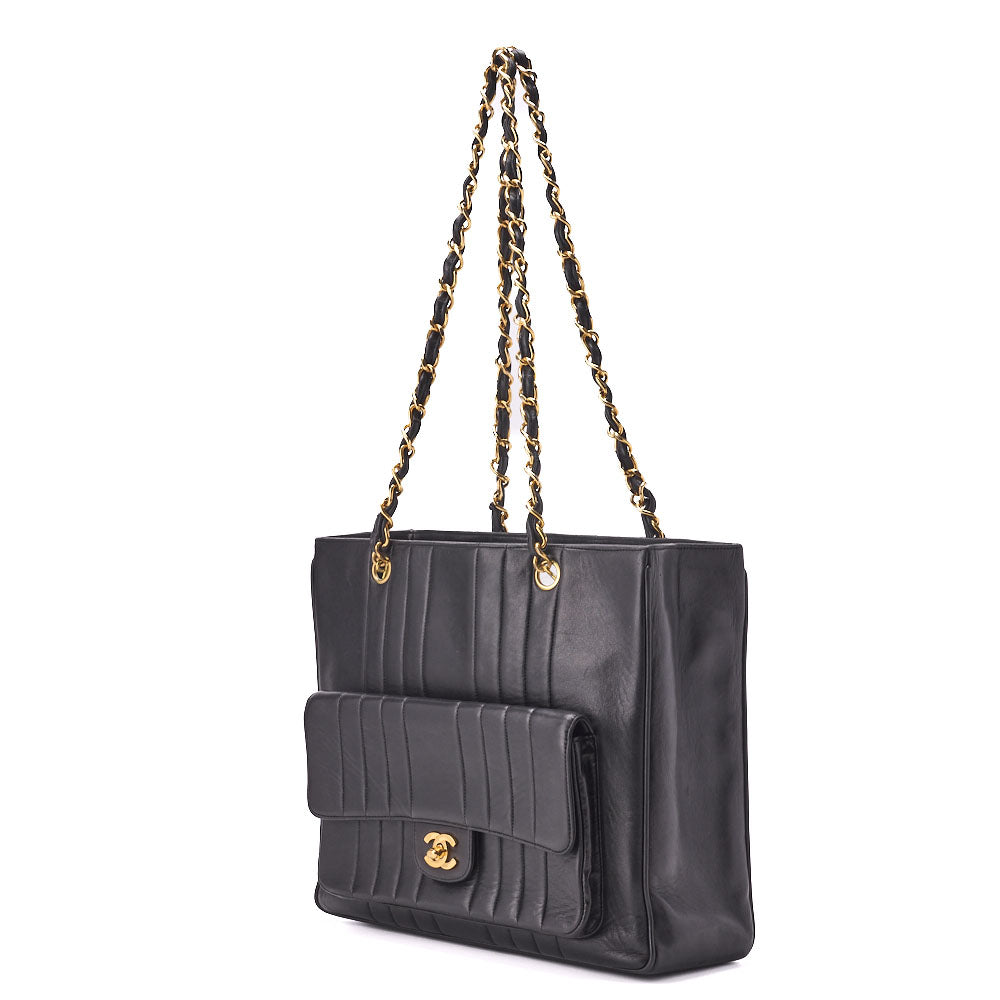 Pre-Owned Schultertasche Mademoiselle Außenklappe Lammleder Schwarz Goldfarbene Hardware Pre-Owned