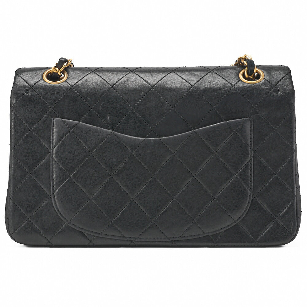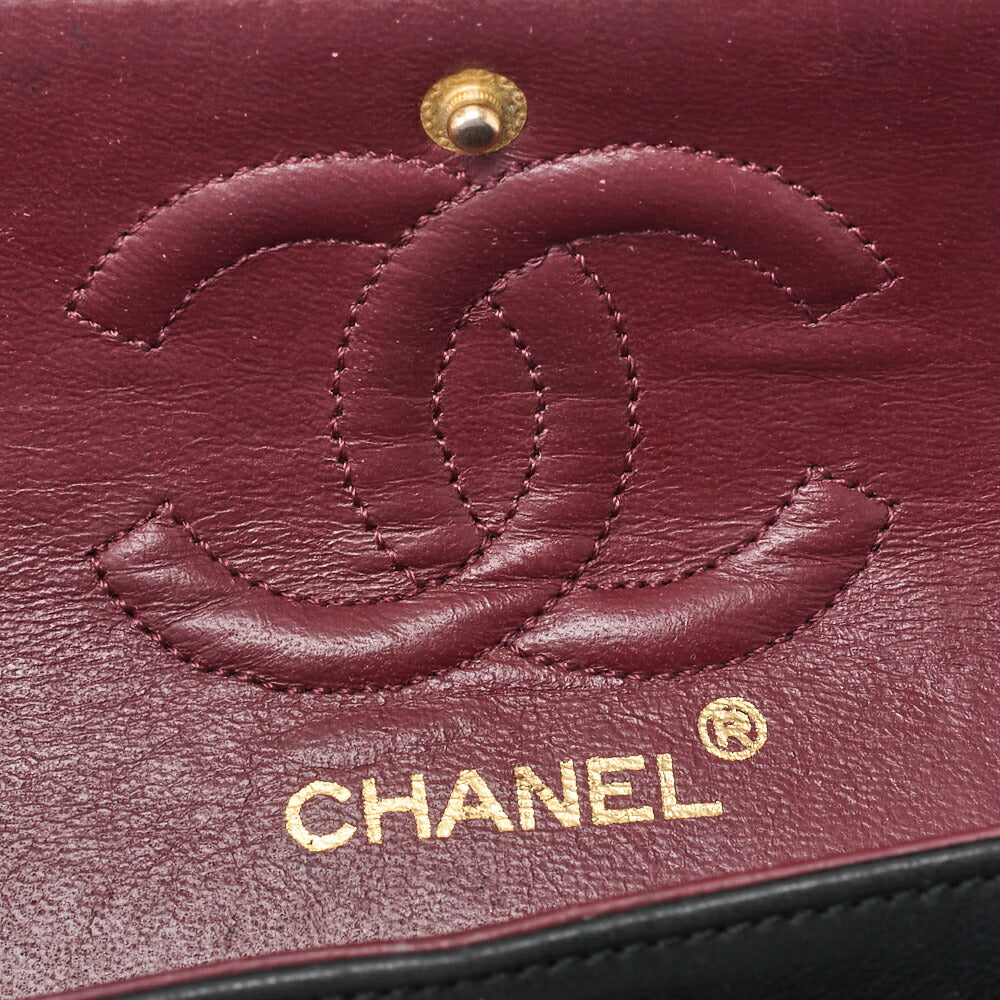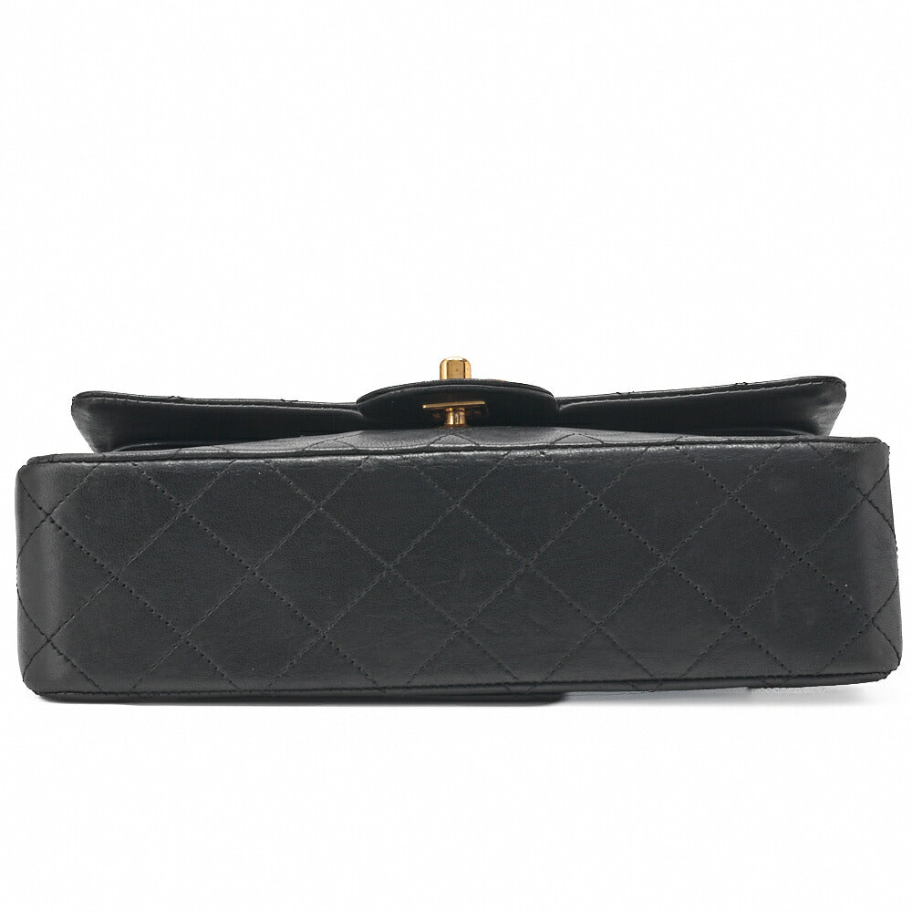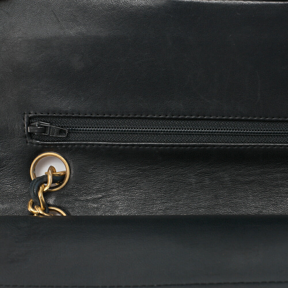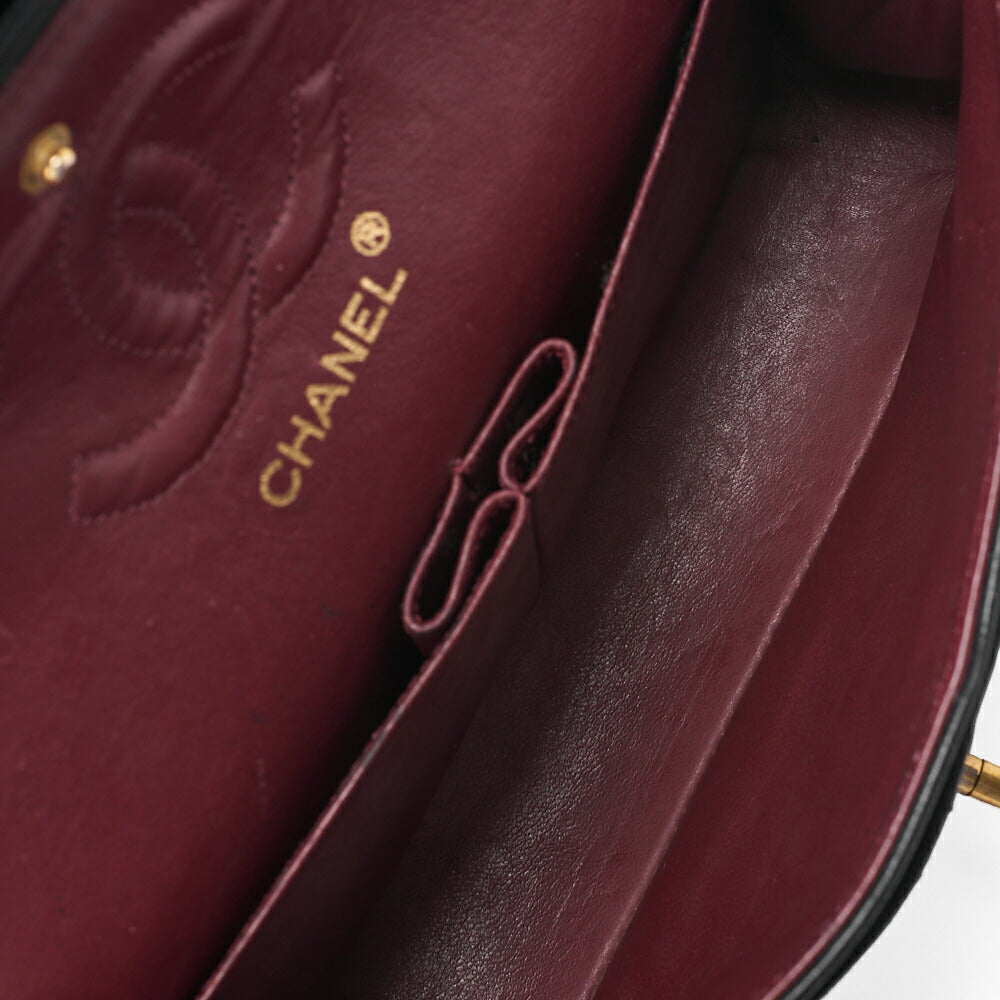 Pre-Owned Schultertasche Matelassé Doppelklappe Kette Lammleder Schwarz Goldfarbene Hardware Pre-Owned