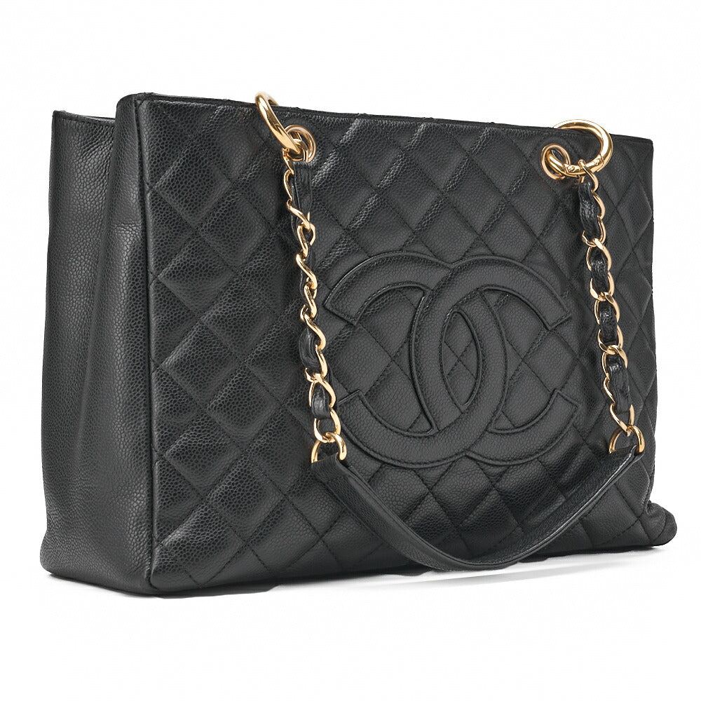 Pre-Owned Schultertasche Matelassé Caviar Skin Schwarz Goldfarbene Hardware Pre-Owned