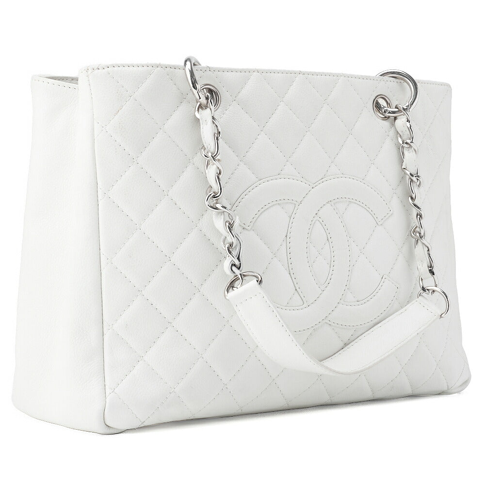 Pre-Owned Schultertasche Matelassé Caviar Skin Weiß Silberfarbene Hardware Pre-Owned