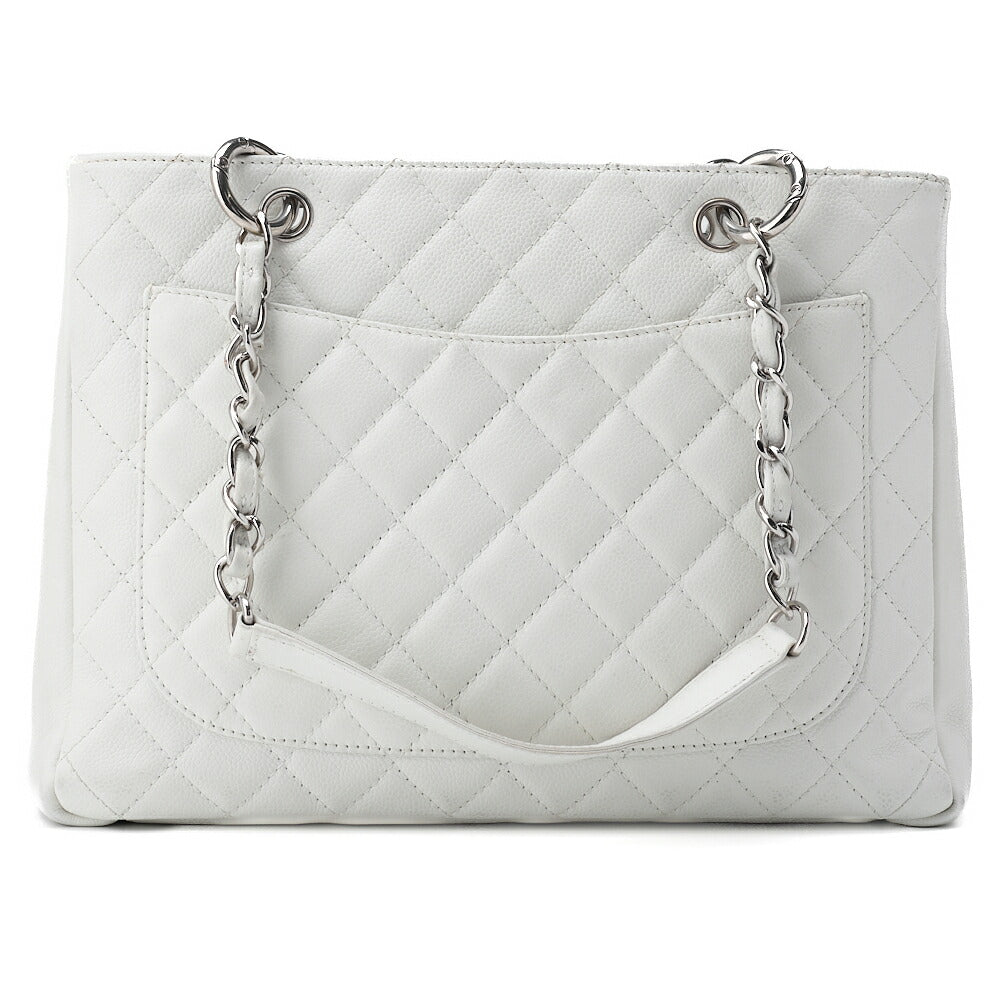 Erweitern Sie Ihre Accessoire-Kollektion mit der exquisiten CHANEL Chanel Shoulder Bag Matelasse Caviar Skin . Diese atemberaubende Damentasche ist aus luxuriösem Kaviarleder in strahlendem Weiß gefertigt und verfügt über elegante Doppelketten, die ihren raffinierten Reiz unterstreichen.