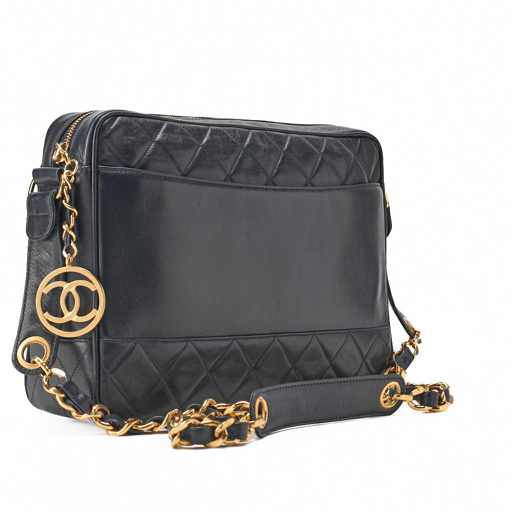 Pre-Owned Schultertasche Matelasse Circle Coco Charm Lammleder Navy Goldfarbene Hardware Pre-Owned