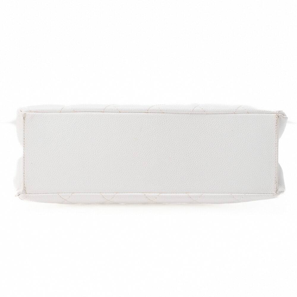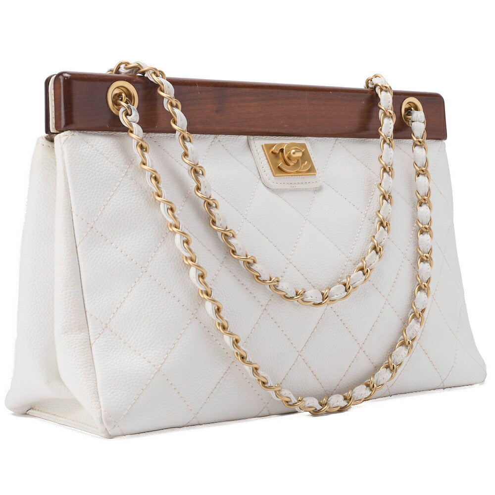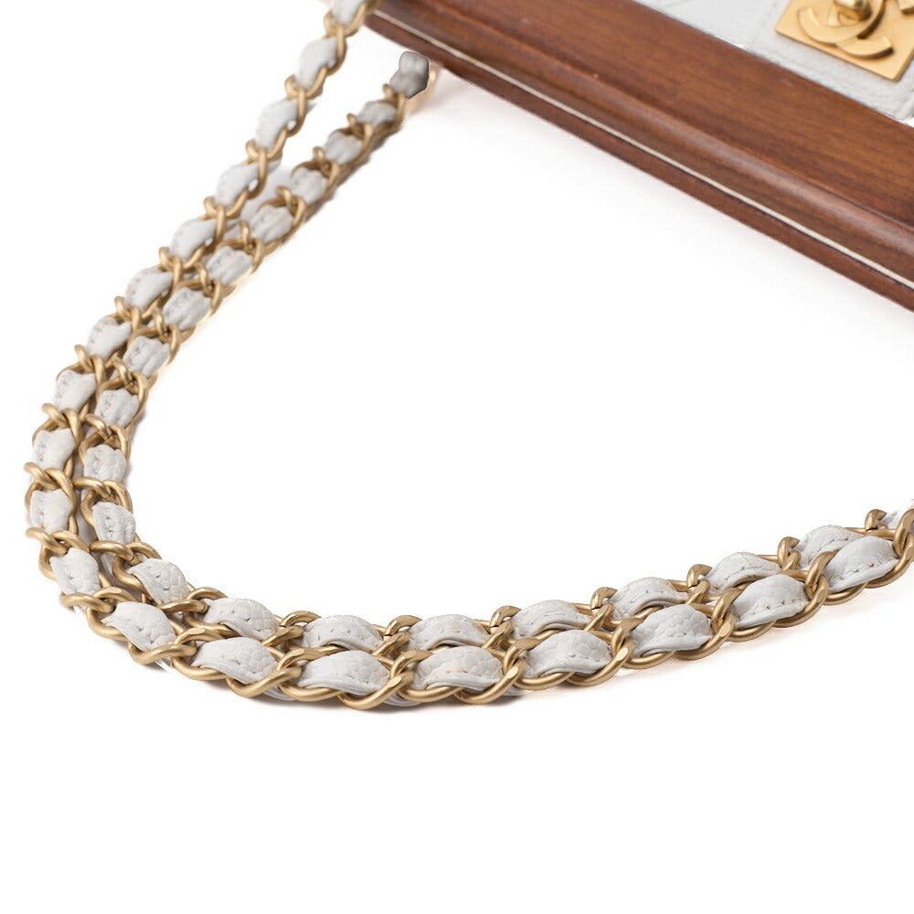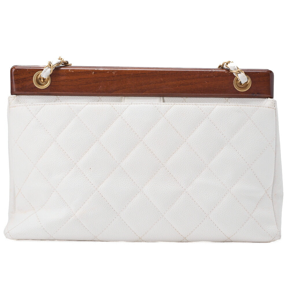 Gebrauchte Umhängetasche Matelassé Coco Mark Holz Gamaguchi Caviar Skin Weiß Goldfarbene Hardware Gebraucht