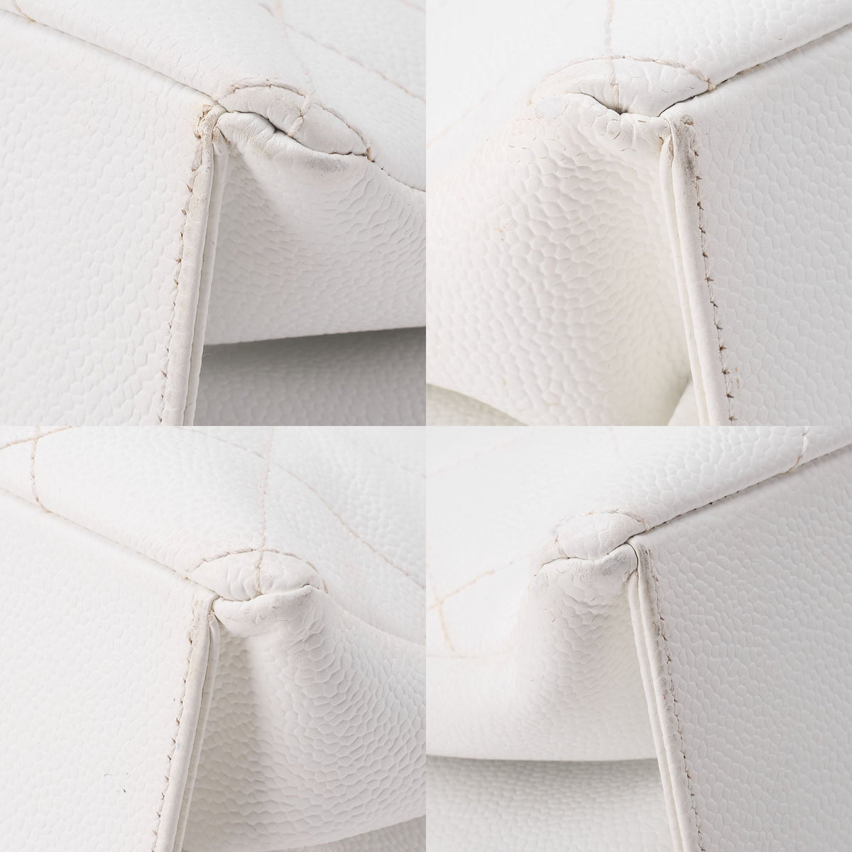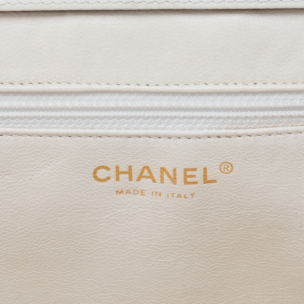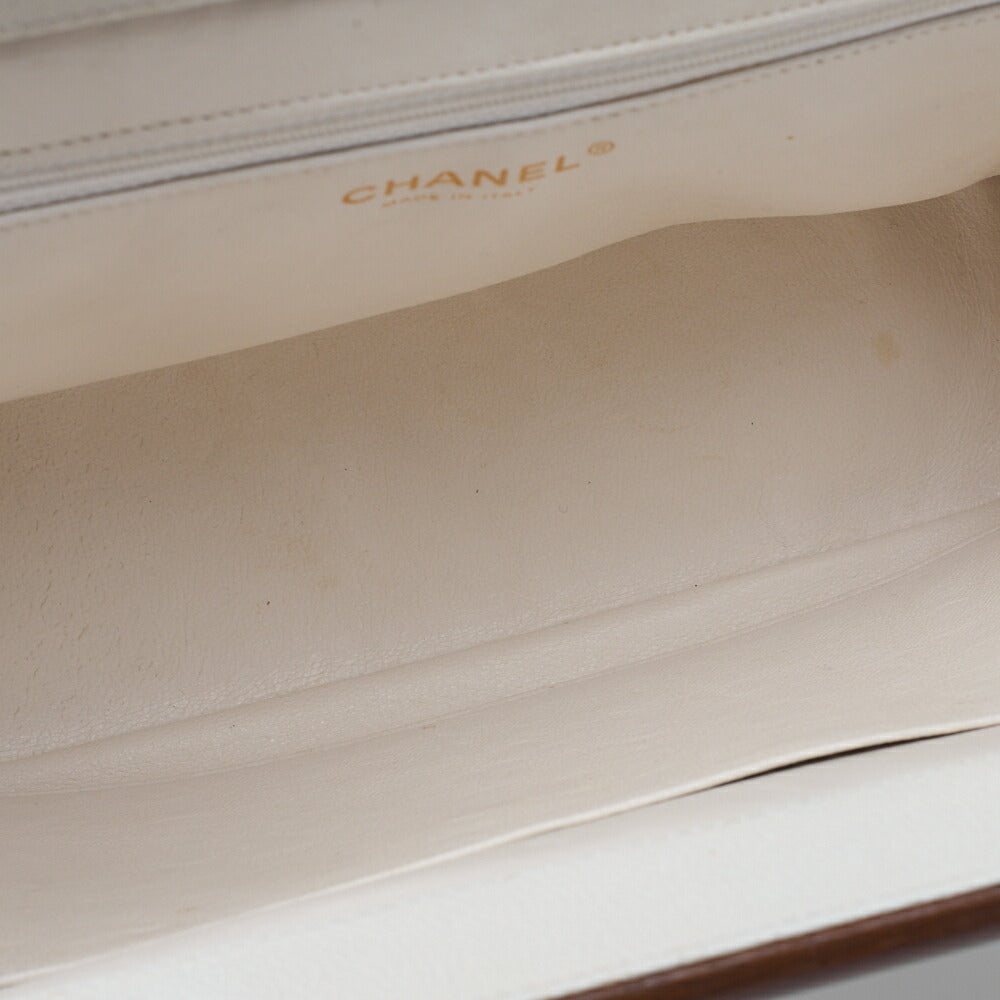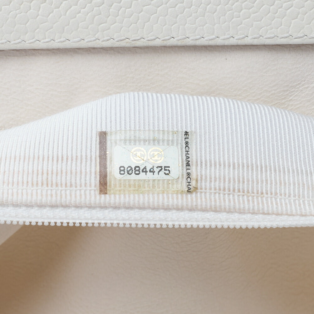 Gebrauchte Umhängetasche Matelassé Coco Mark Holz Gamaguchi Caviar Skin Weiß Goldfarbene Hardware Gebraucht