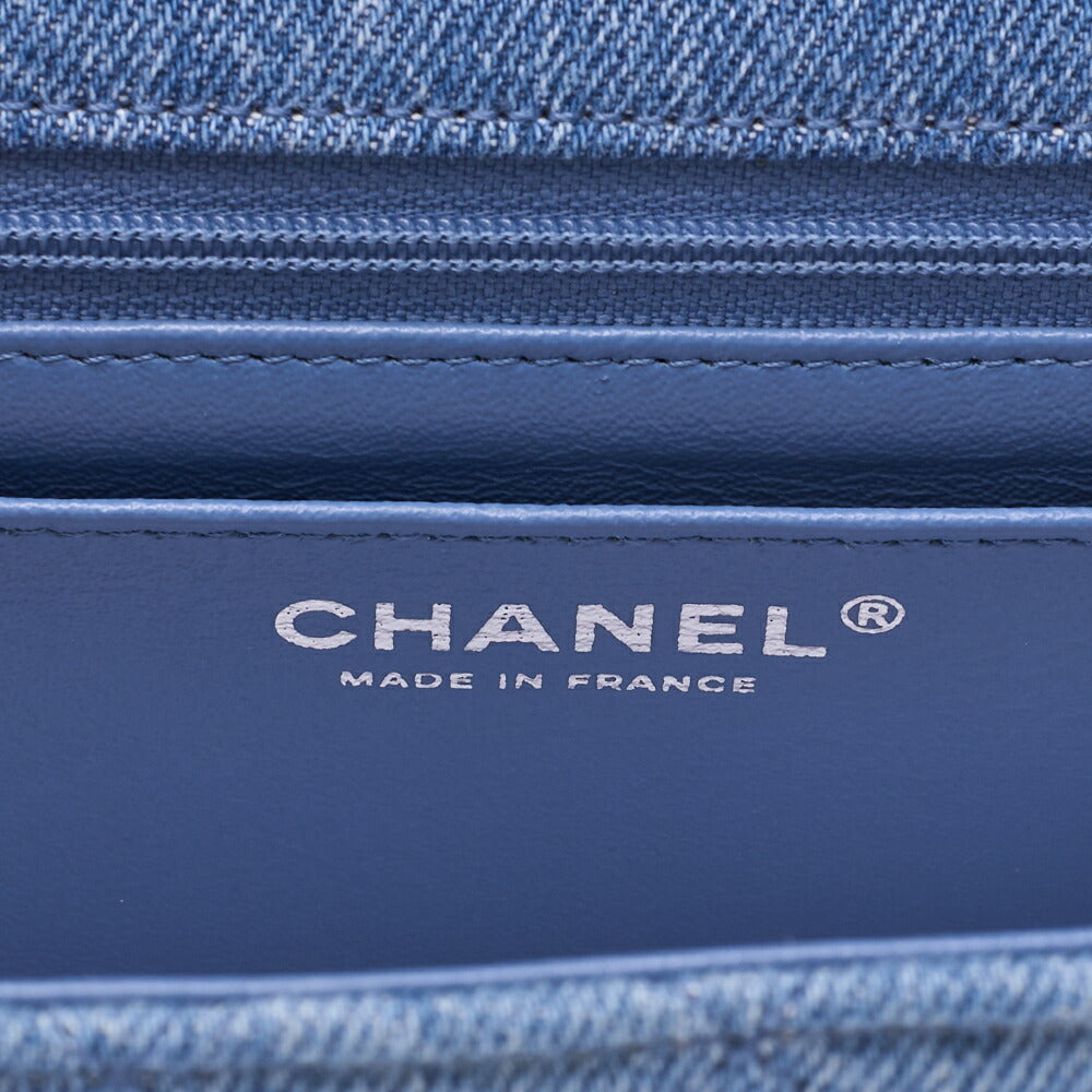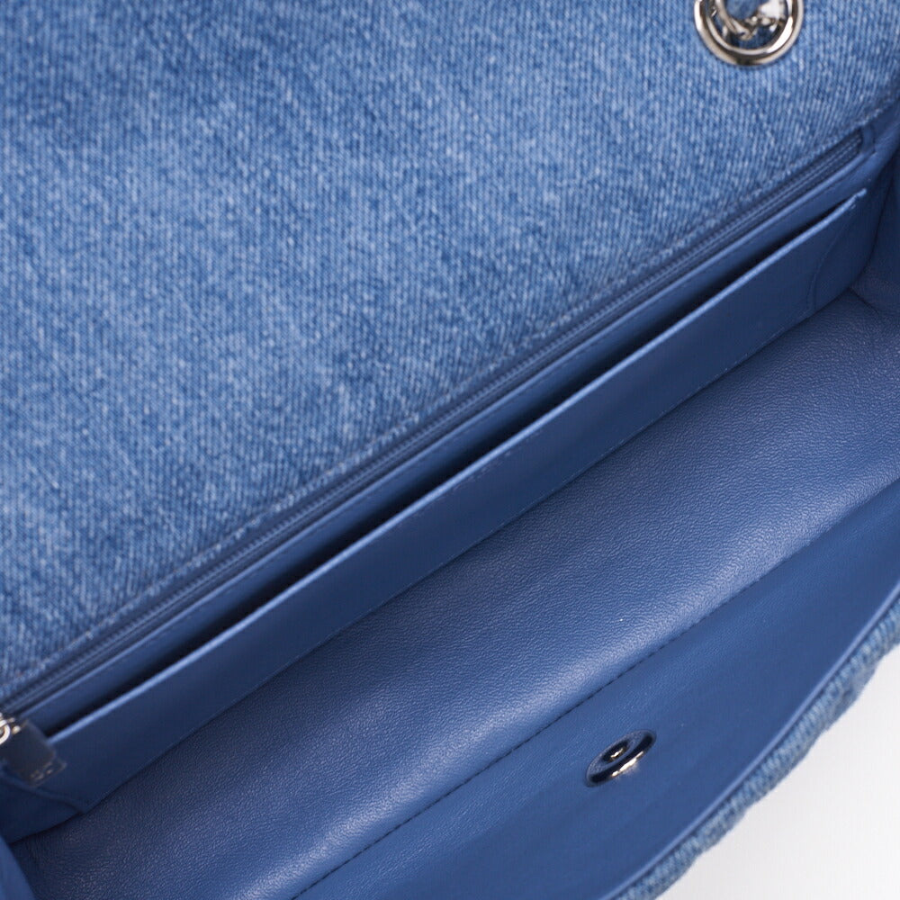 Wir präsentieren die exquisite CHANEL Schultertasche Matelassé Denim Blue Single Flap Turn Lock – eine atemberaubende Ergänzung für jede Damenkollektion. Gefertigt aus einzigartigem Denim-Material in einem faszinierenden Blauton vereint diese Handtasche Eleganz mit lässiger Eleganz. Die silbernen Metallbeschläge verleihen dem stilvollen Design einen Hauch von Luxus und machen sie perfekt für den Alltag und besondere Anlässe.