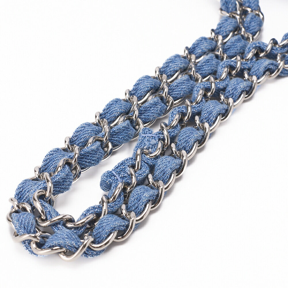 Pre-Owned Umhängetasche Matelassé Denim Blau Einzelklappe Drehverschluss Silberfarbene Hardware Pre-Owned