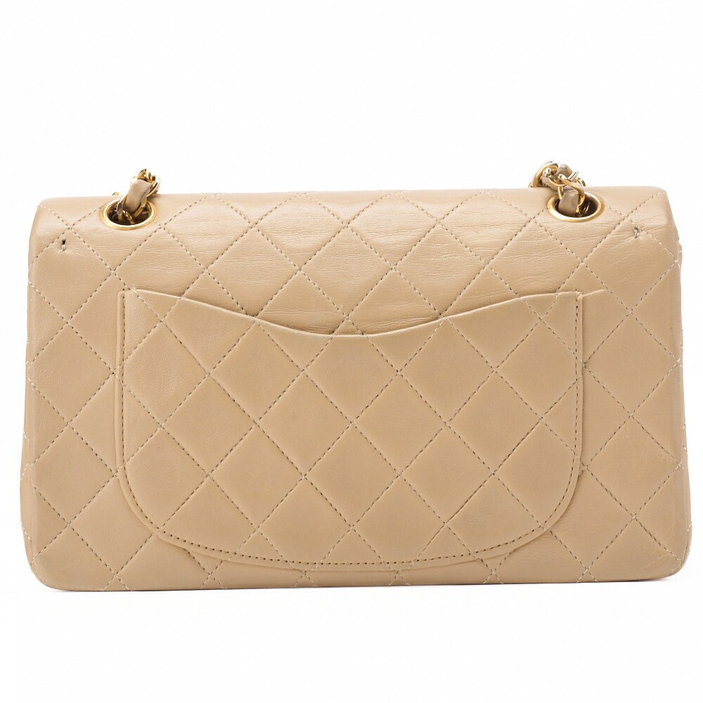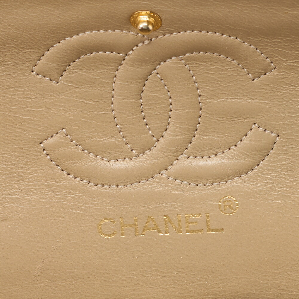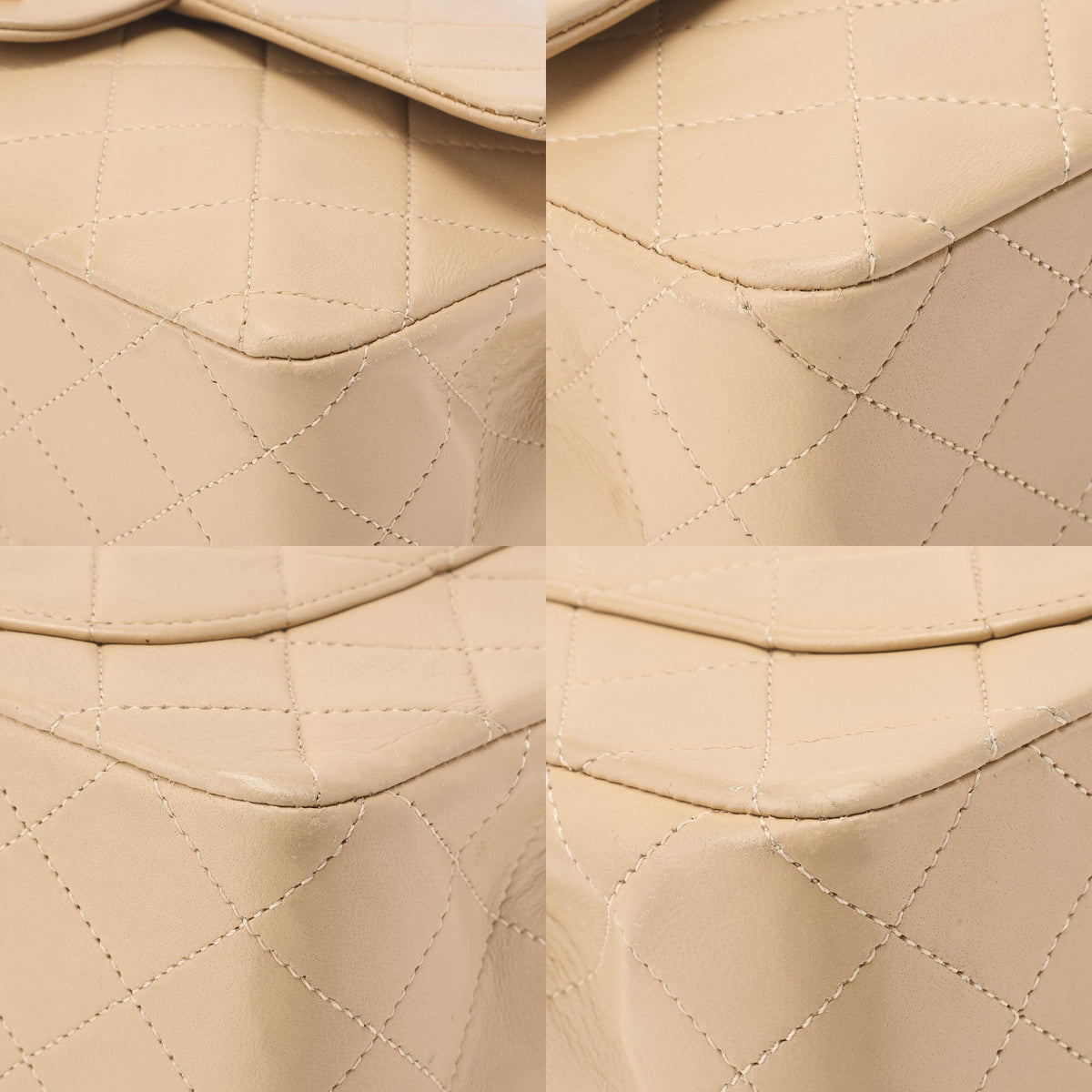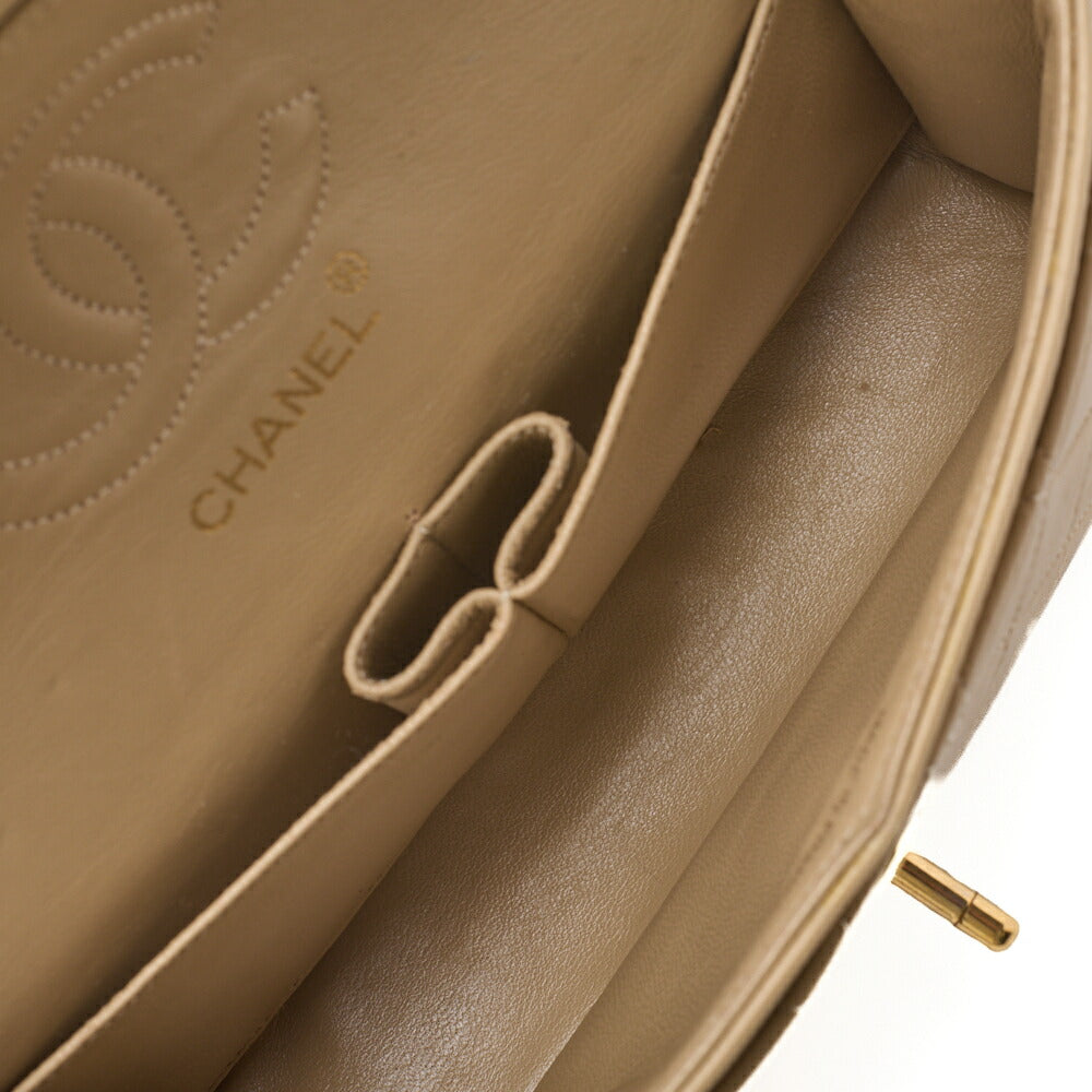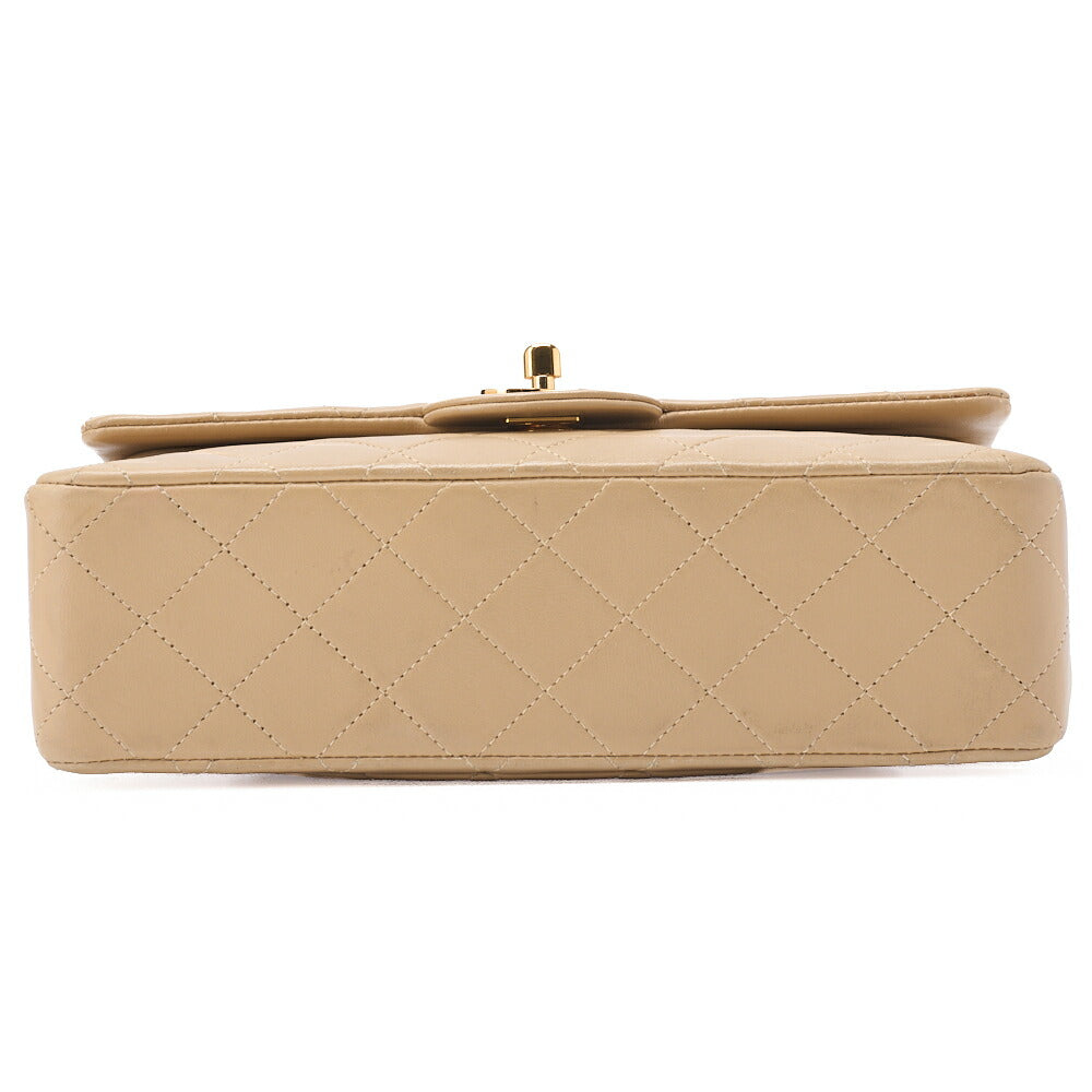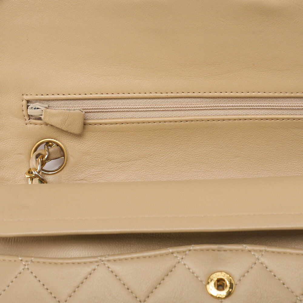 Pre-Owned Schultertasche Matelassé Doppelklappe Lammleder Beige Goldfarbene Hardware Pre-Owned
