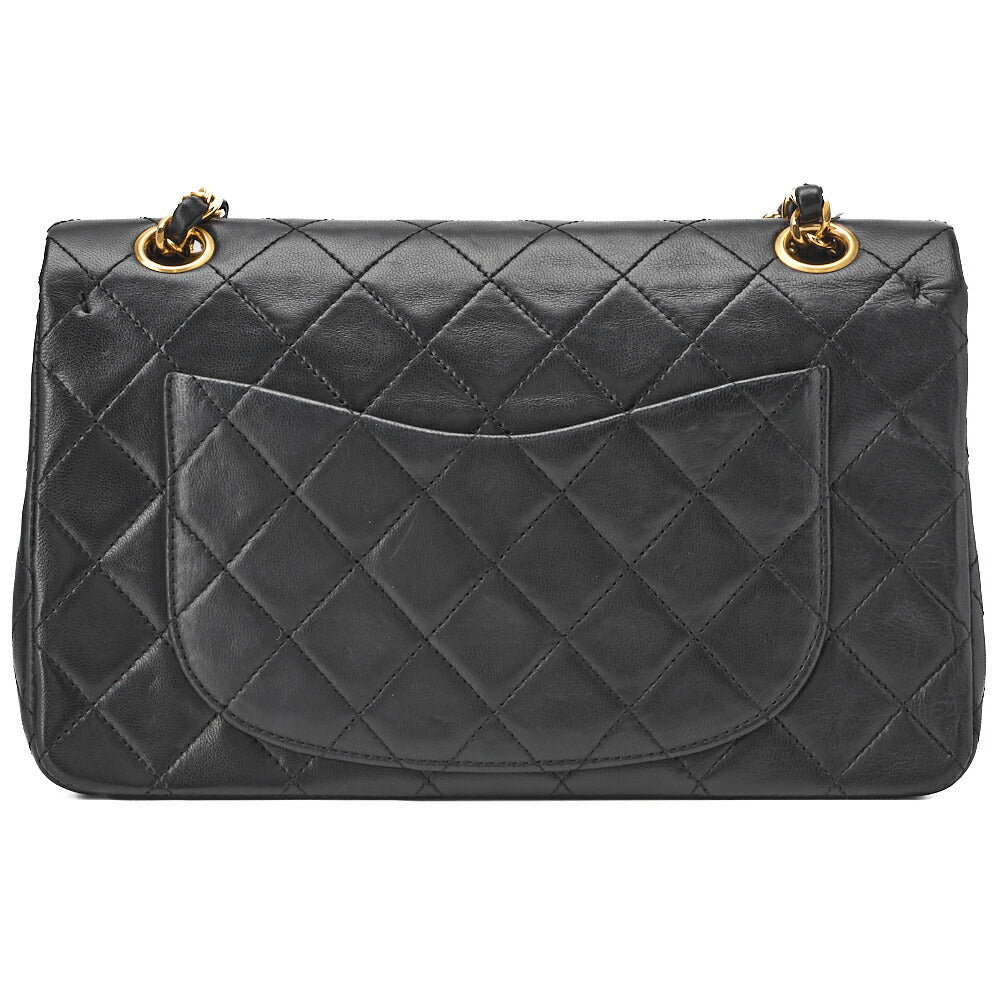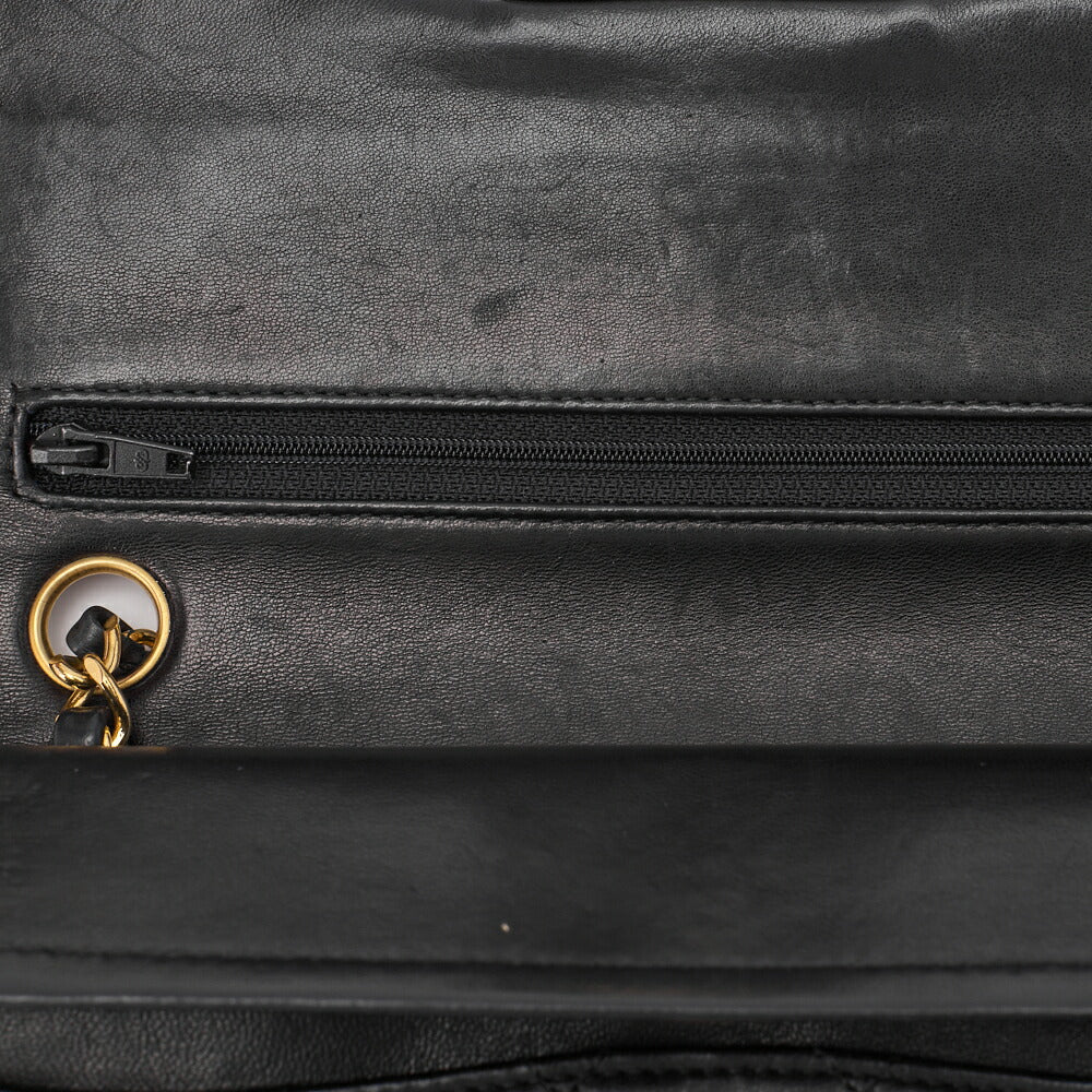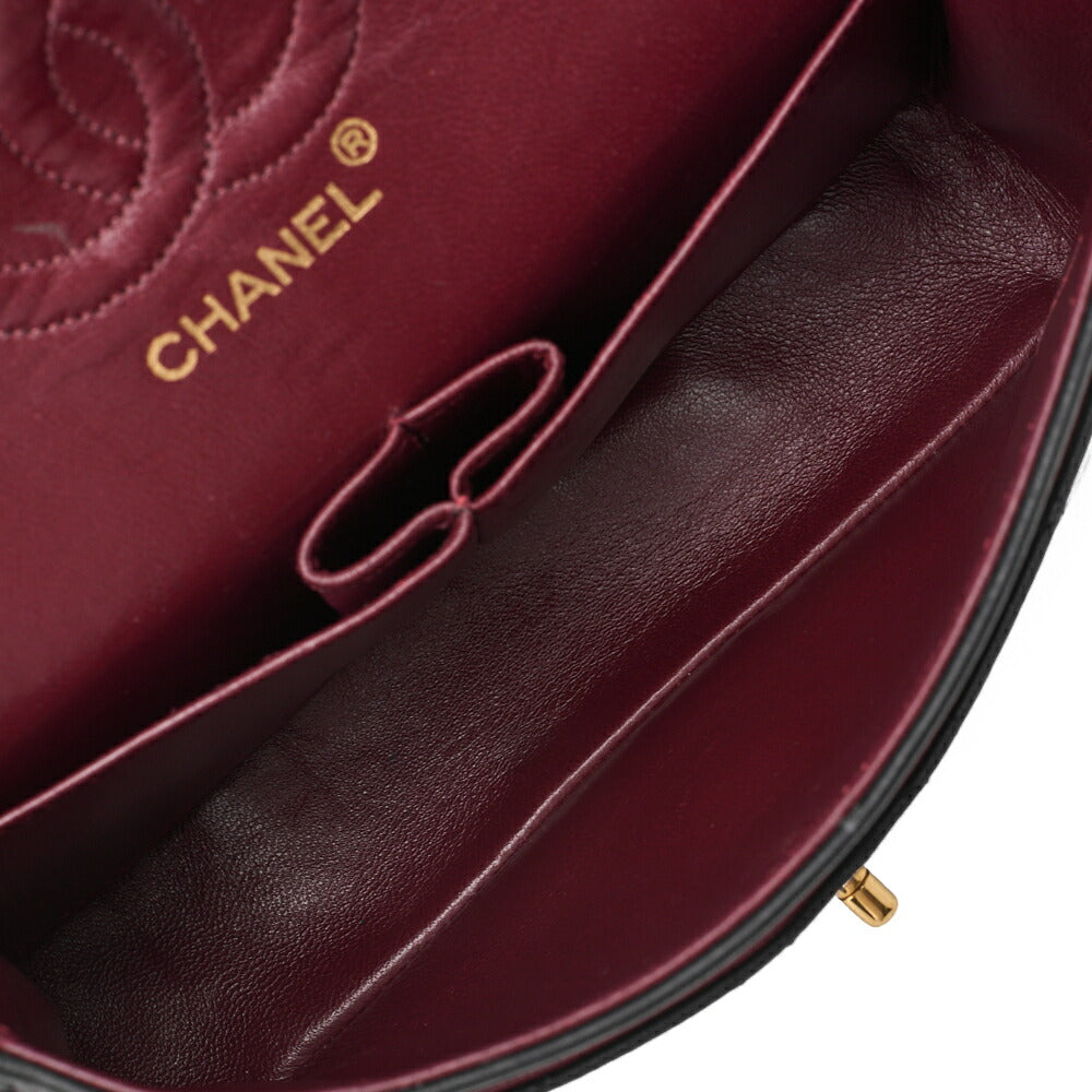 Pre-Owned Schultertasche Matelassé Doppelklappe Lammleder Schwarz Goldfarbene Hardware Pre-Owned