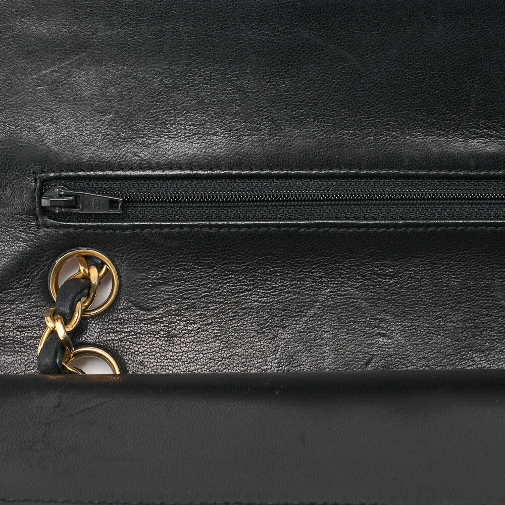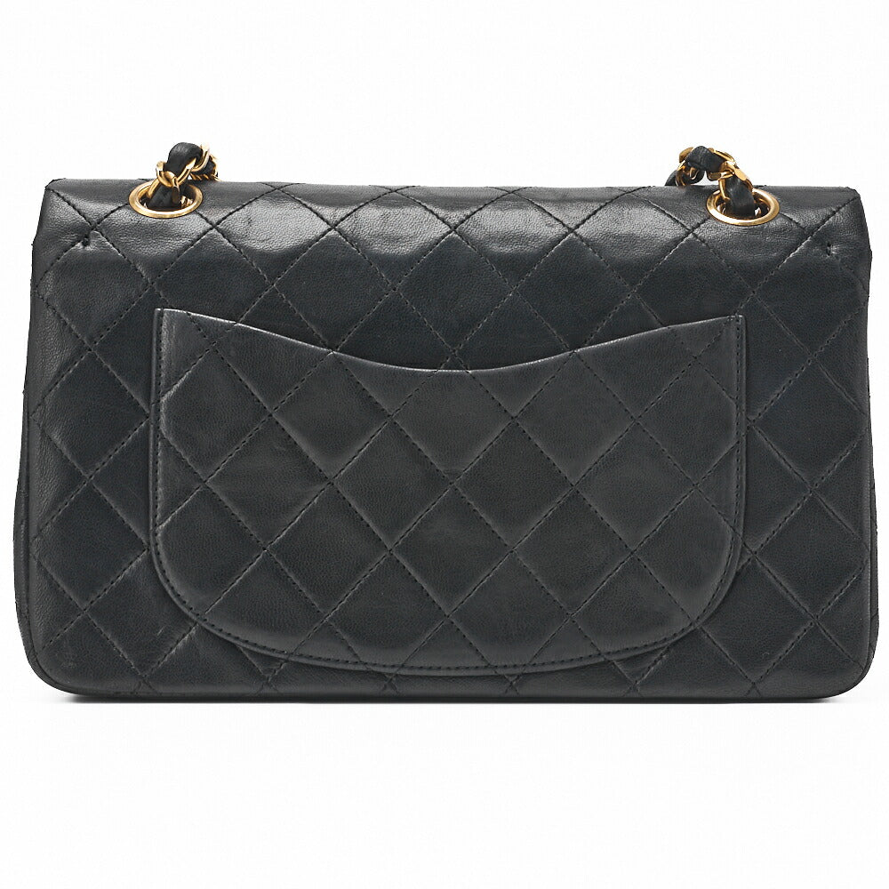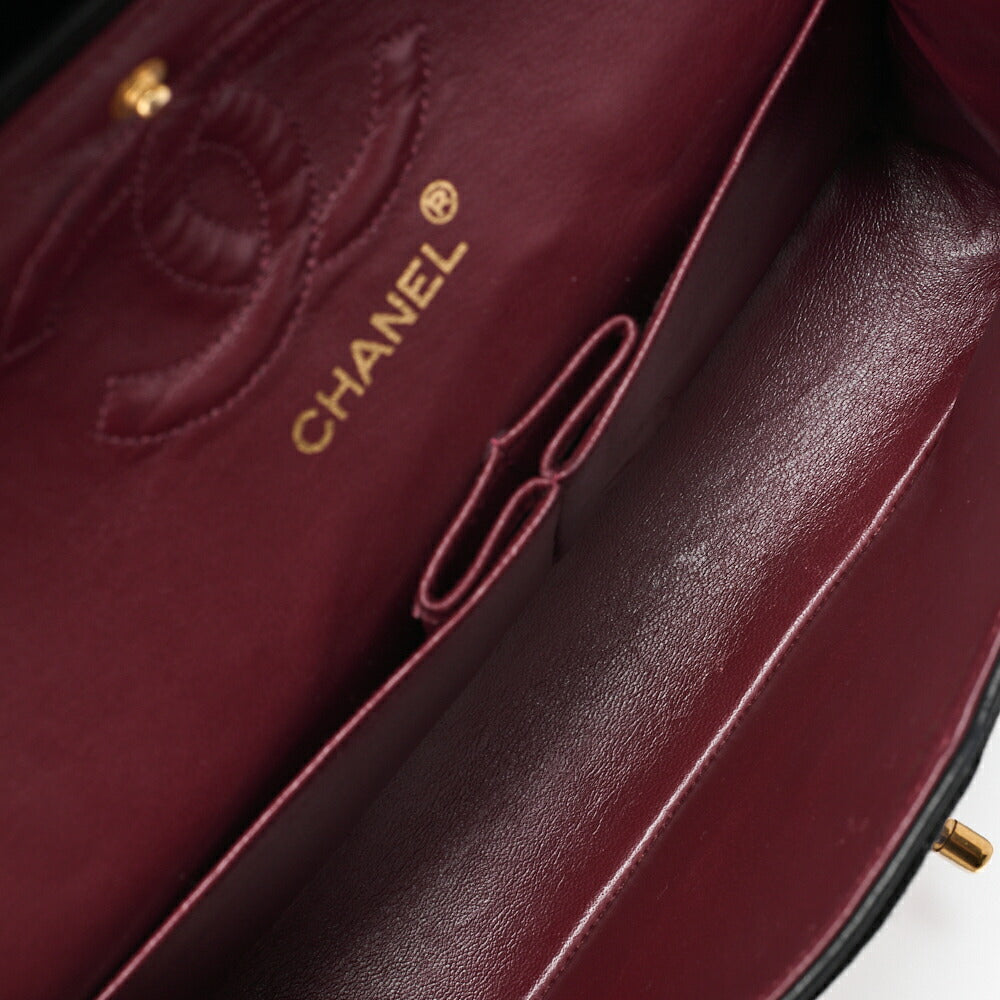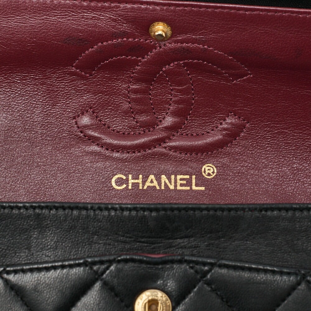 Pre-Owned Schultertasche Matelassé Doppelklappe Lammleder Schwarz Goldfarbene Hardware Pre-Owned