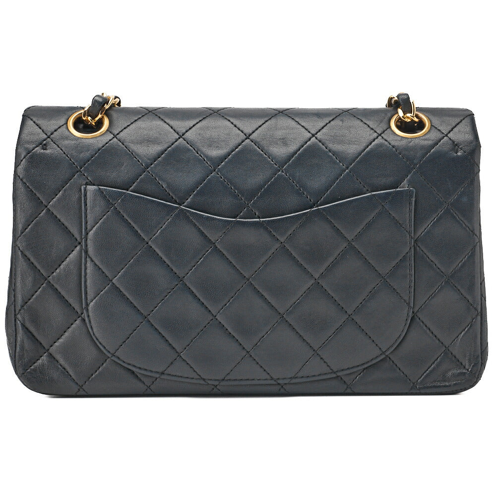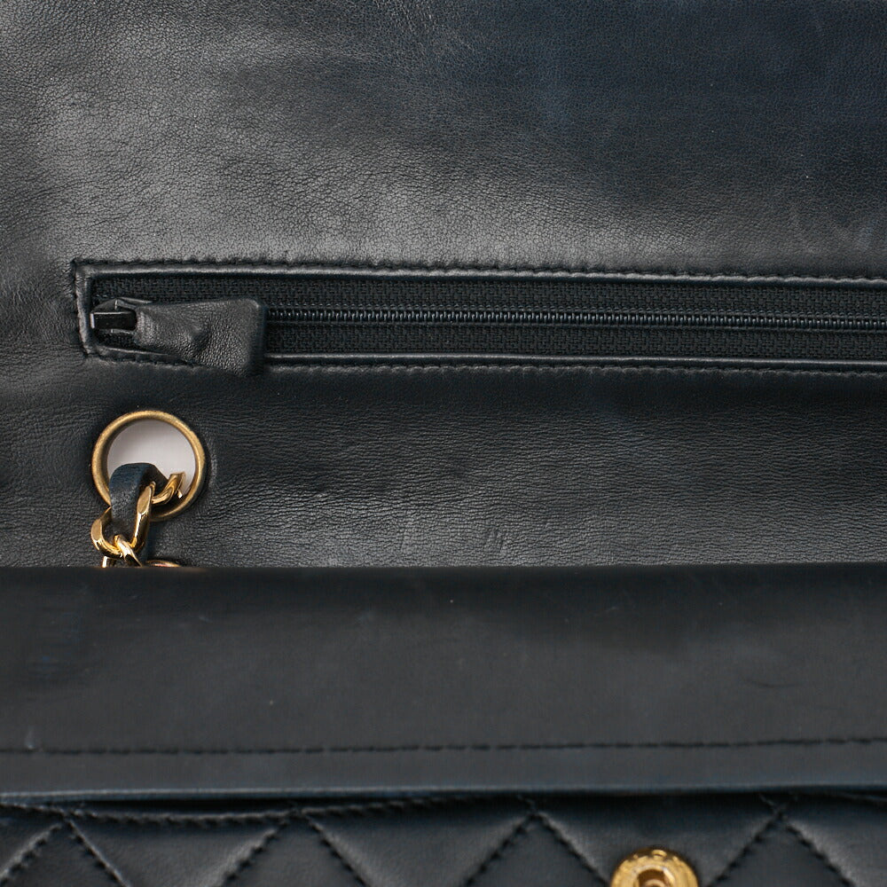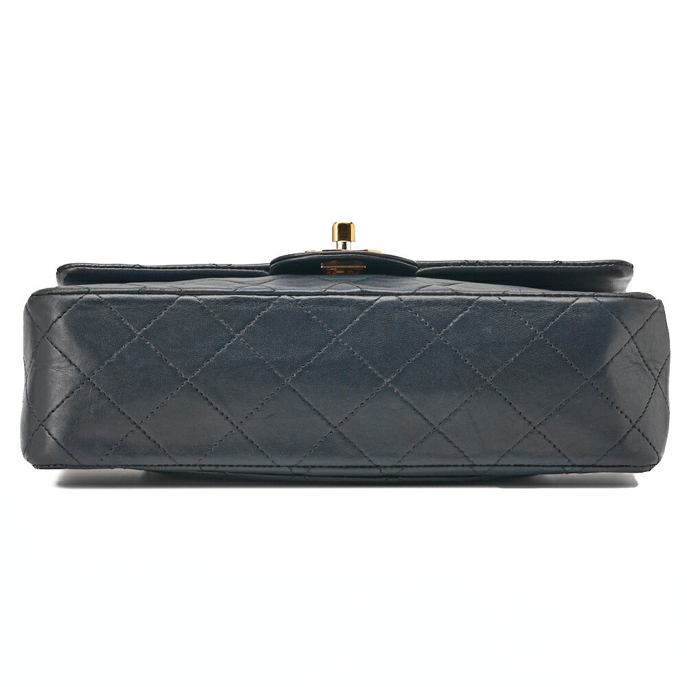 Pre-Owned Schultertasche Matelassé Doppelklappe Lammleder Navy Goldfarbene Hardware Pre-Owned