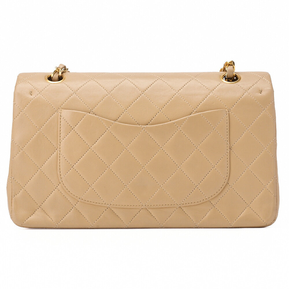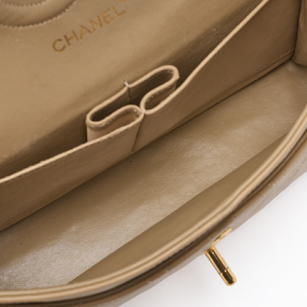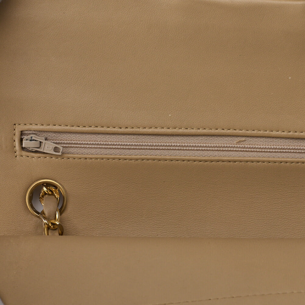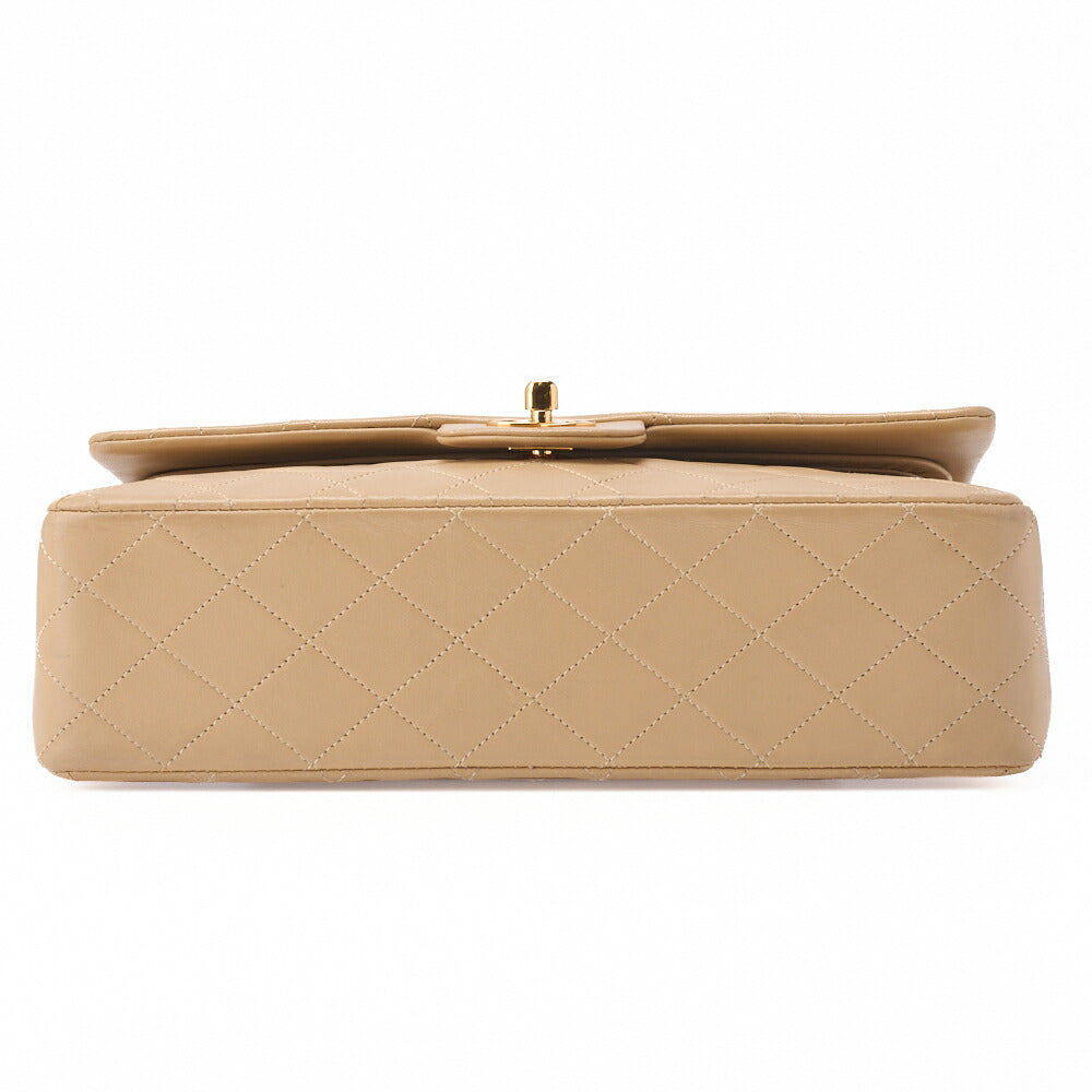Pre-Owned Schultertasche Matelassé Doppelklappe Lammleder Beige Goldfarbene Hardware Pre-Owned