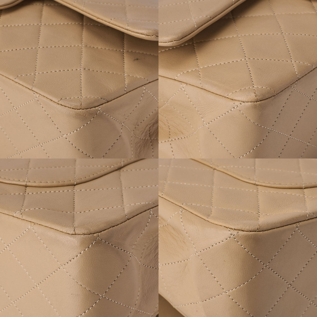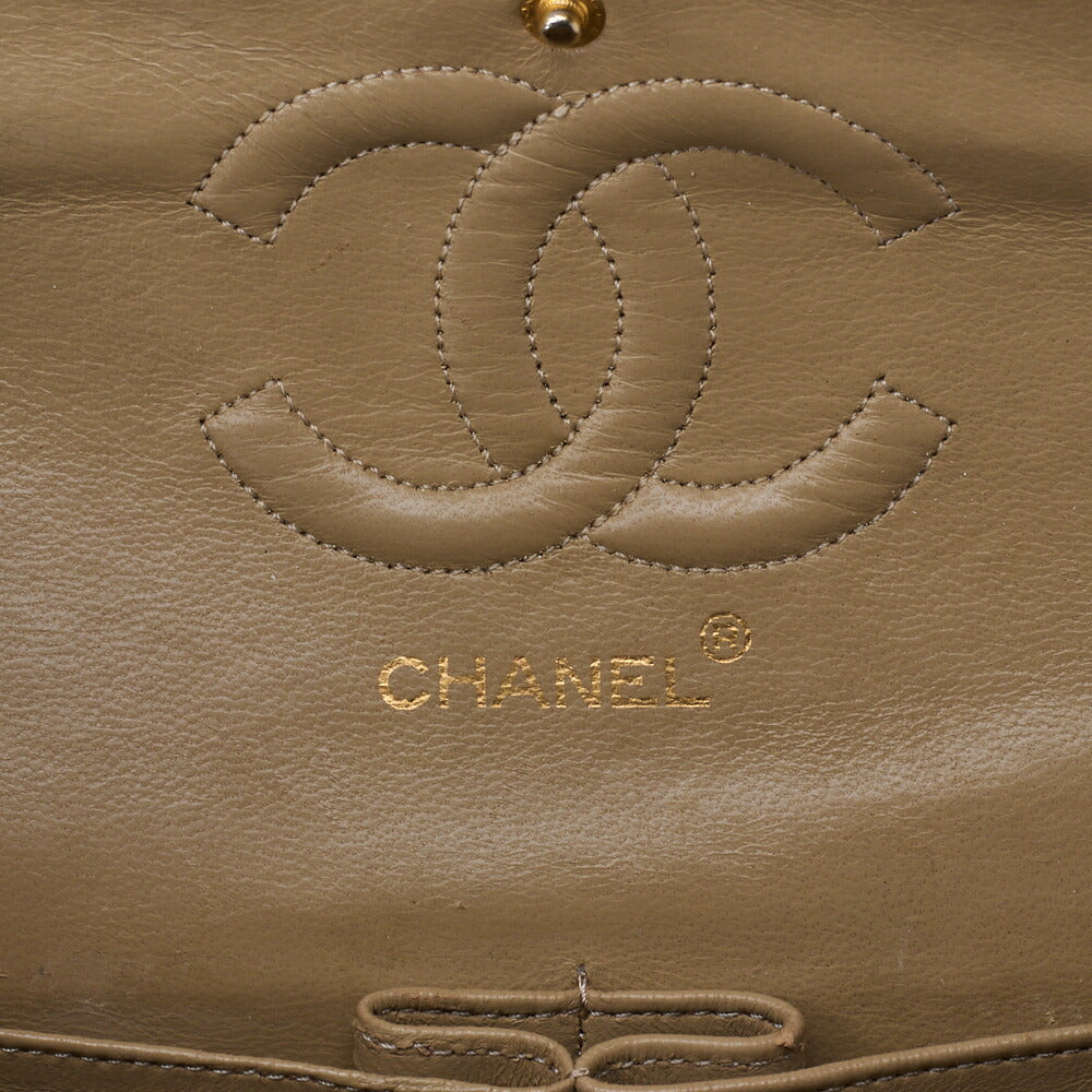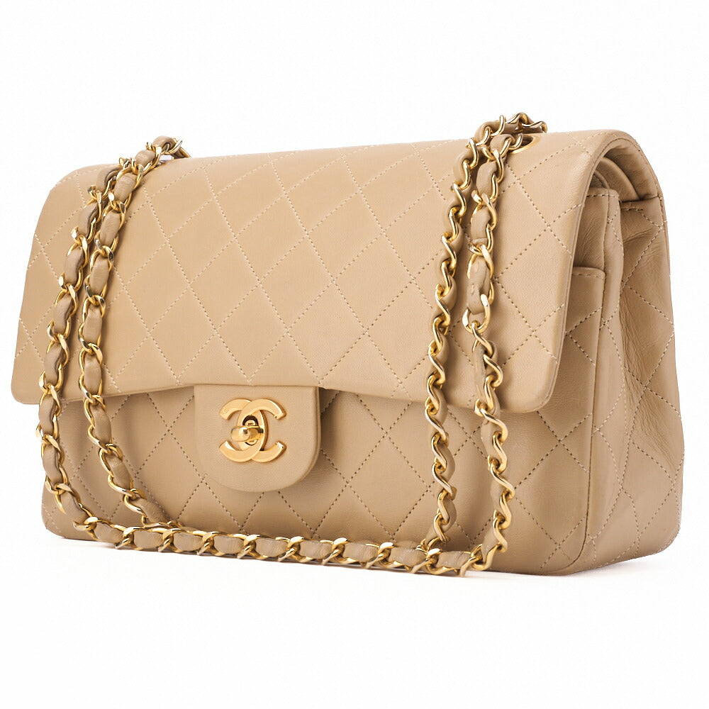 Pre-Owned Schultertasche Matelassé Doppelklappe Lammleder Beige Goldfarbene Hardware Pre-Owned