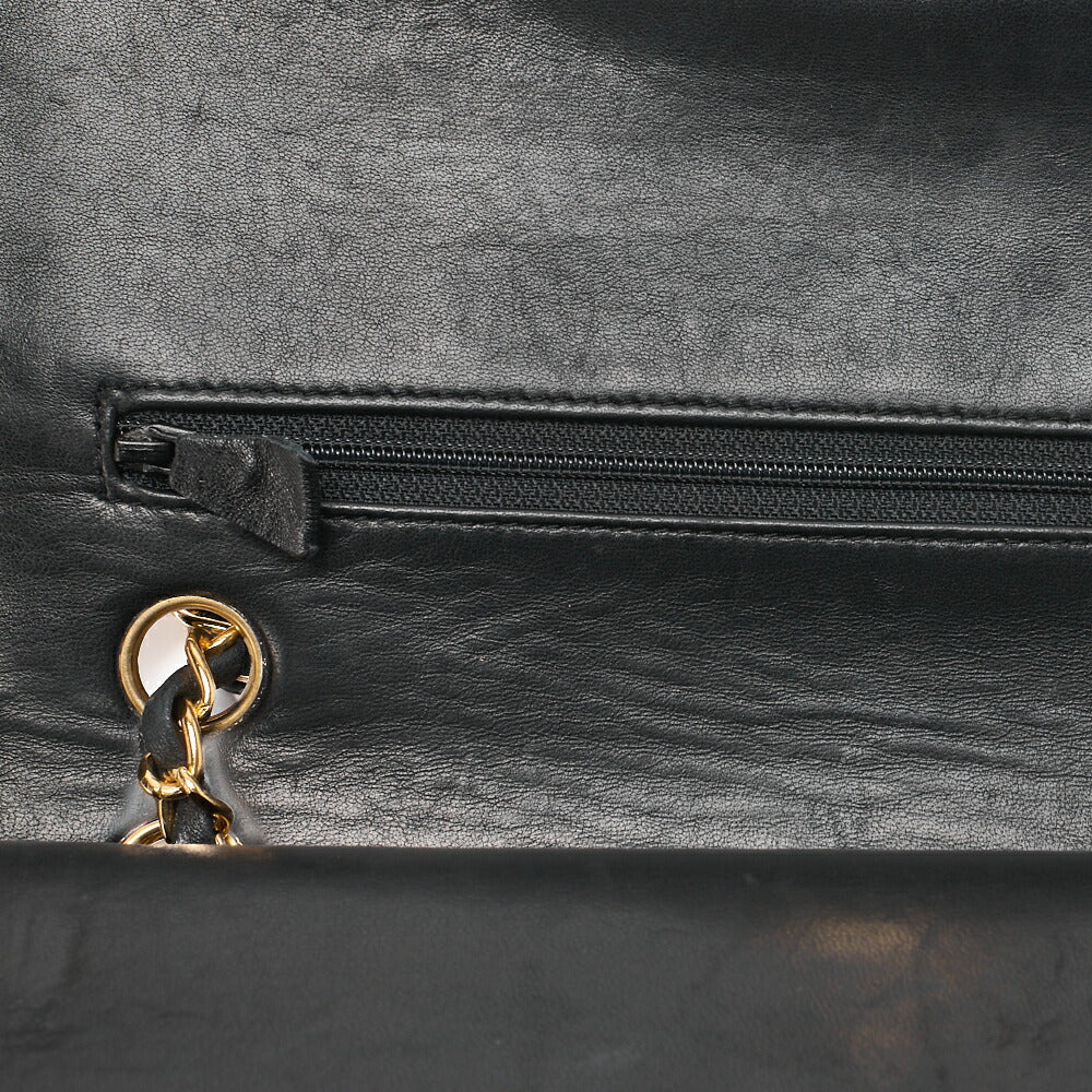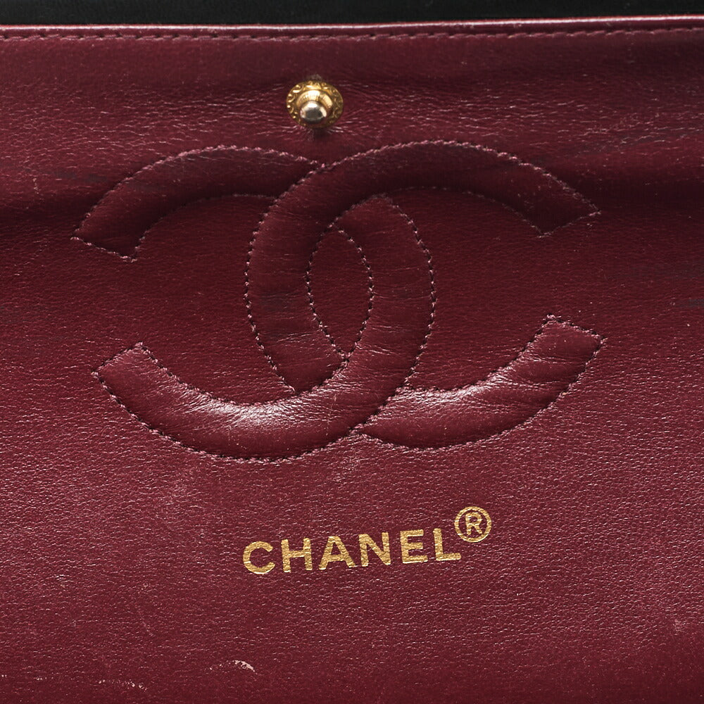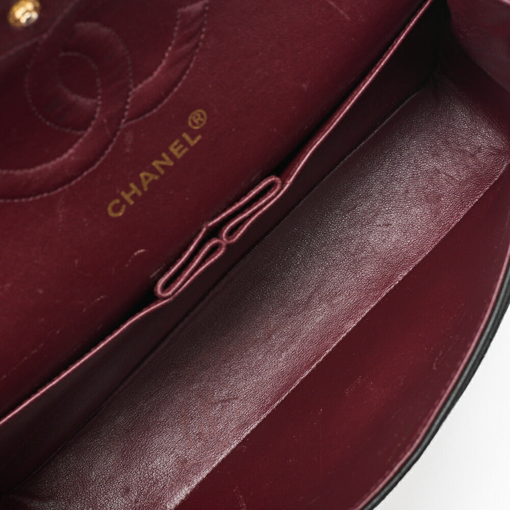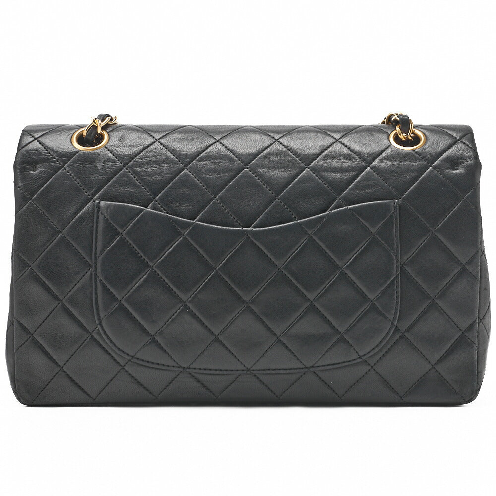 Pre-Owned Schultertasche Matelassé Doppelklappe Lammleder Schwarz Goldfarbene Hardware Pre-Owned