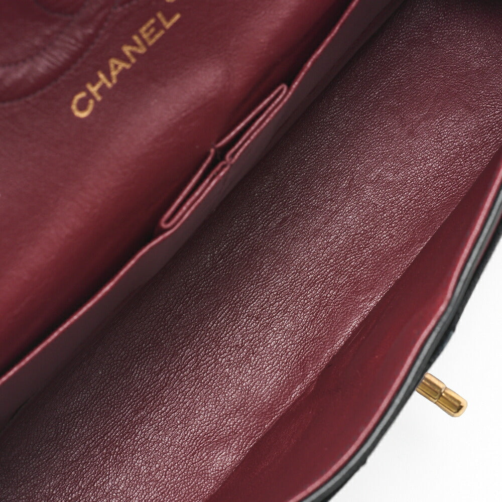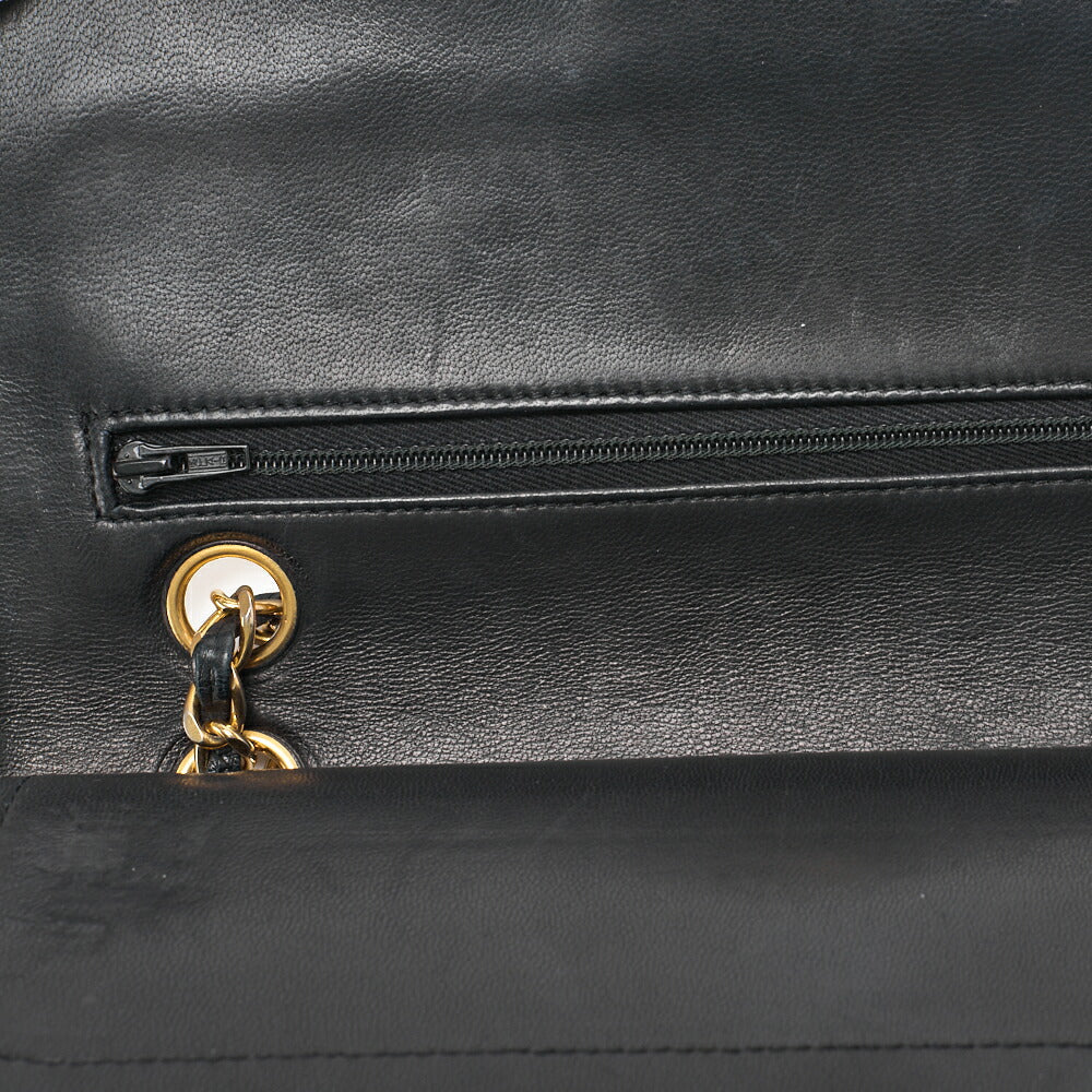 Pre-Owned Schultertasche Matelassé Doppelklappe Lammleder Schwarz Goldfarbene Hardware Pre-Owned