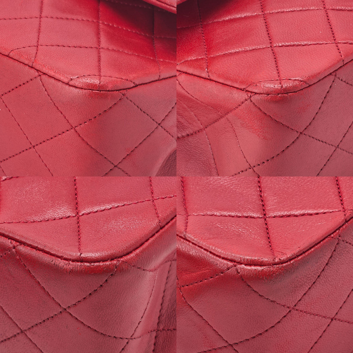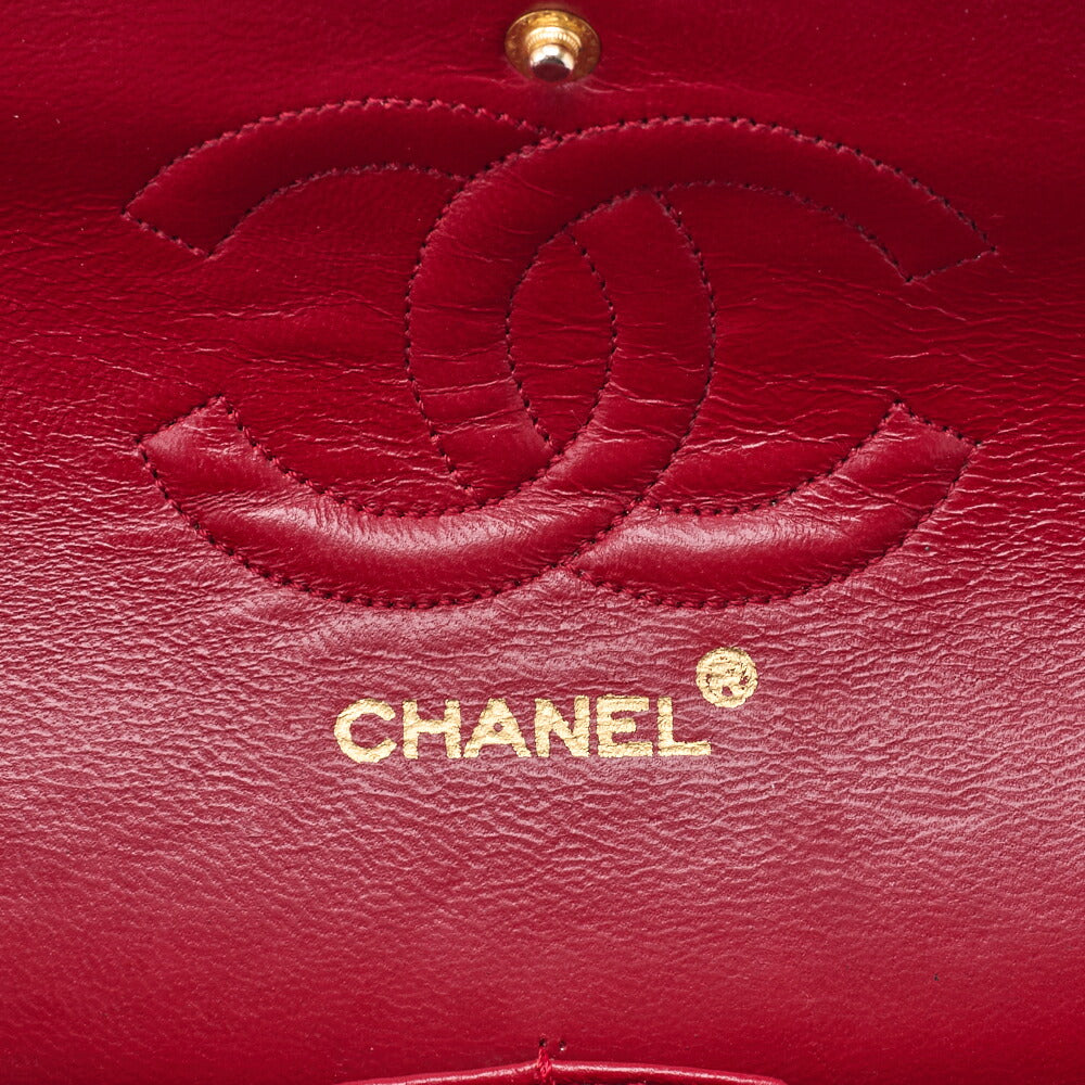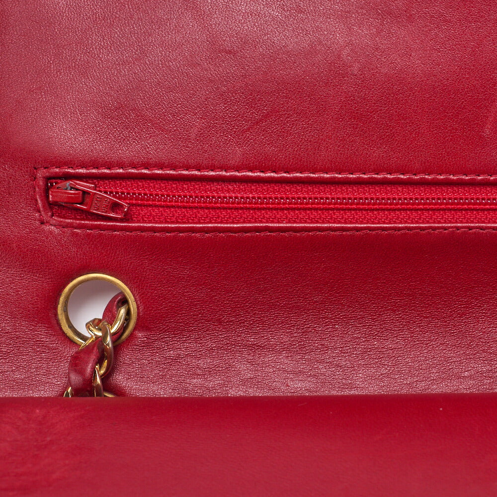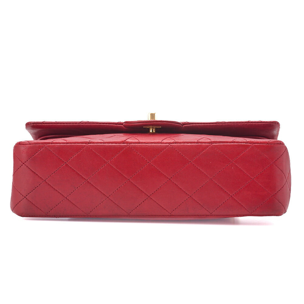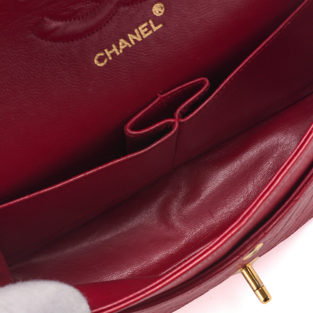 Pre-Owned Schultertasche Matelassé Doppelklappe Lammleder Rot Goldfarbene Hardware Pre-Owned
