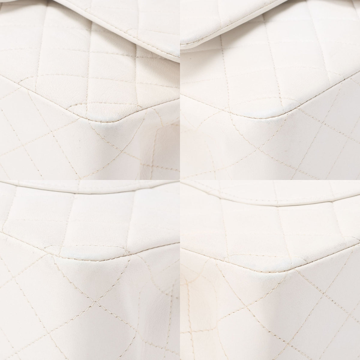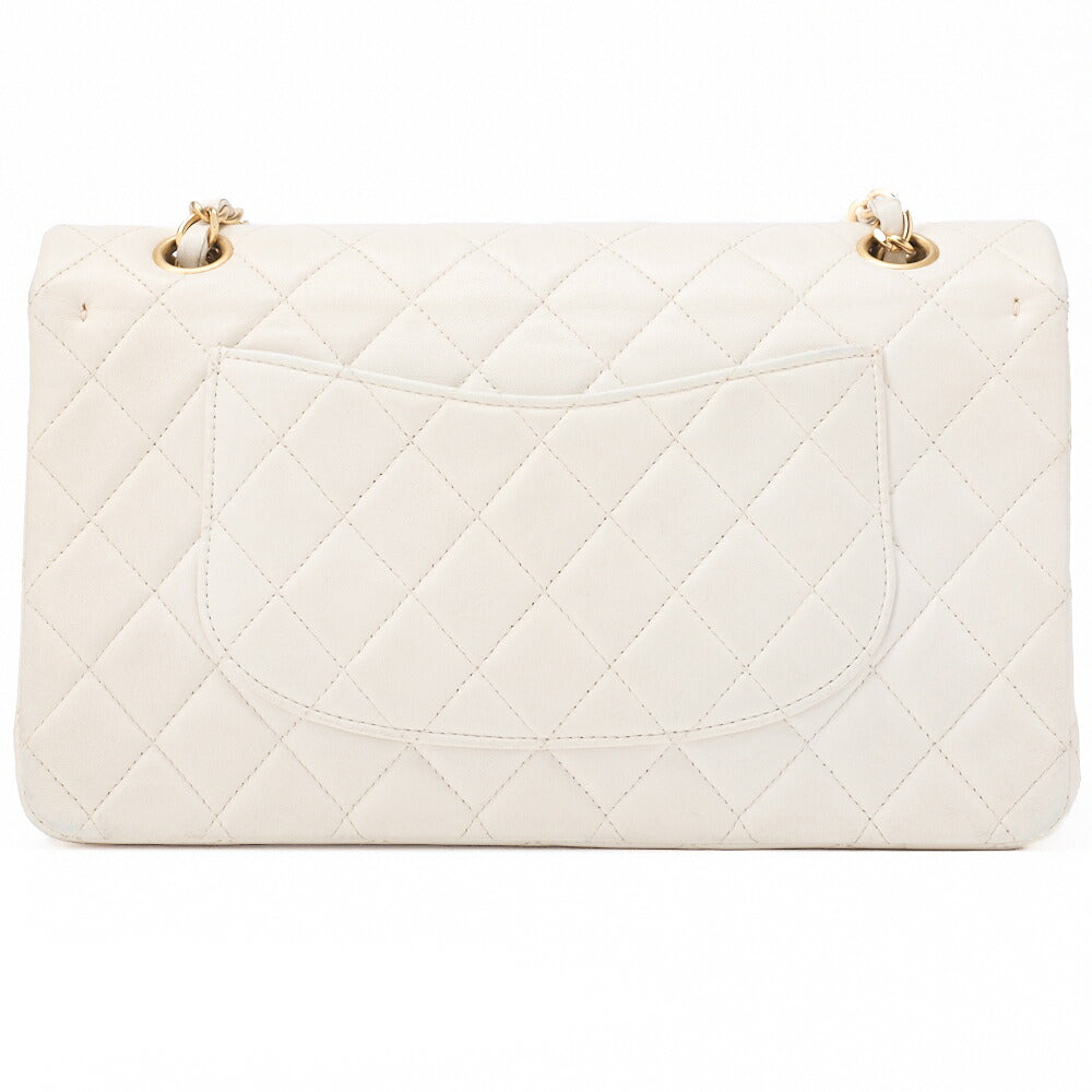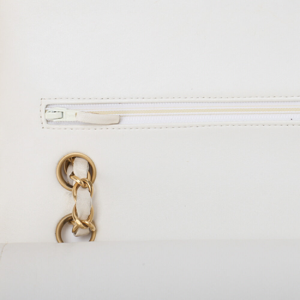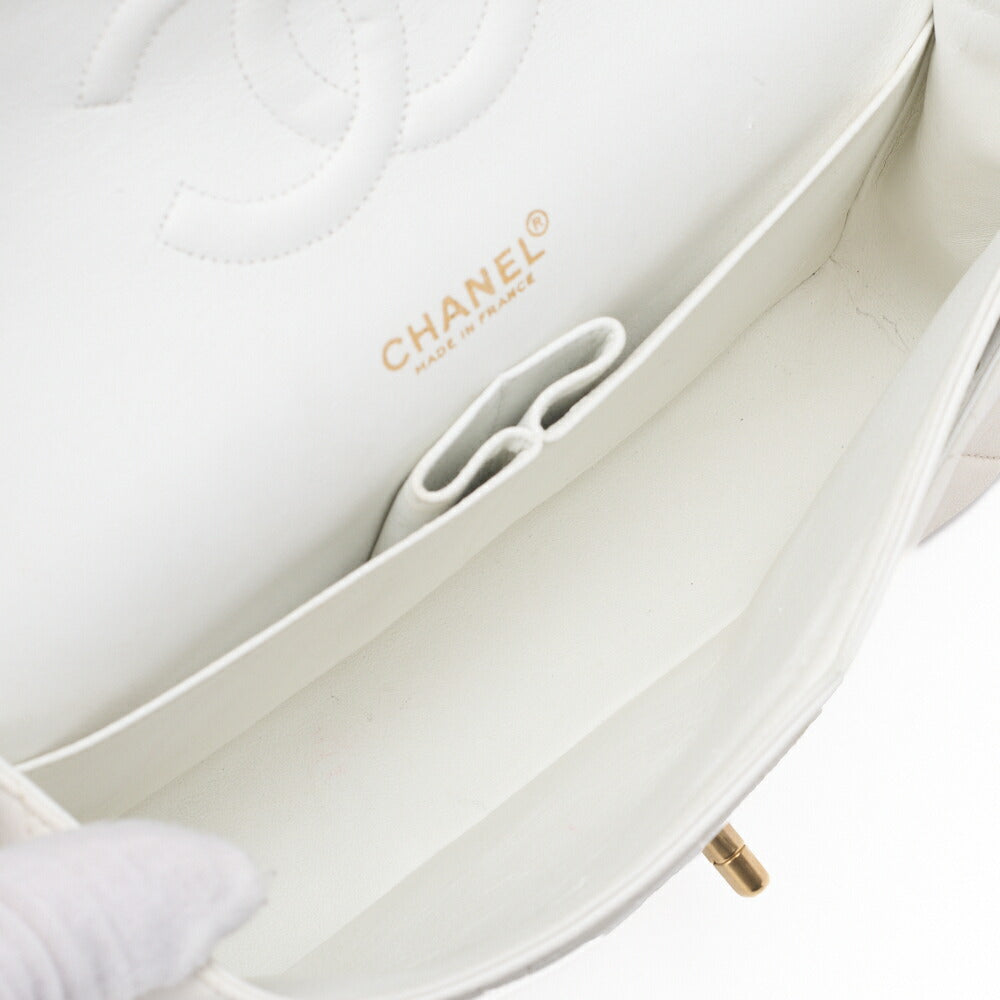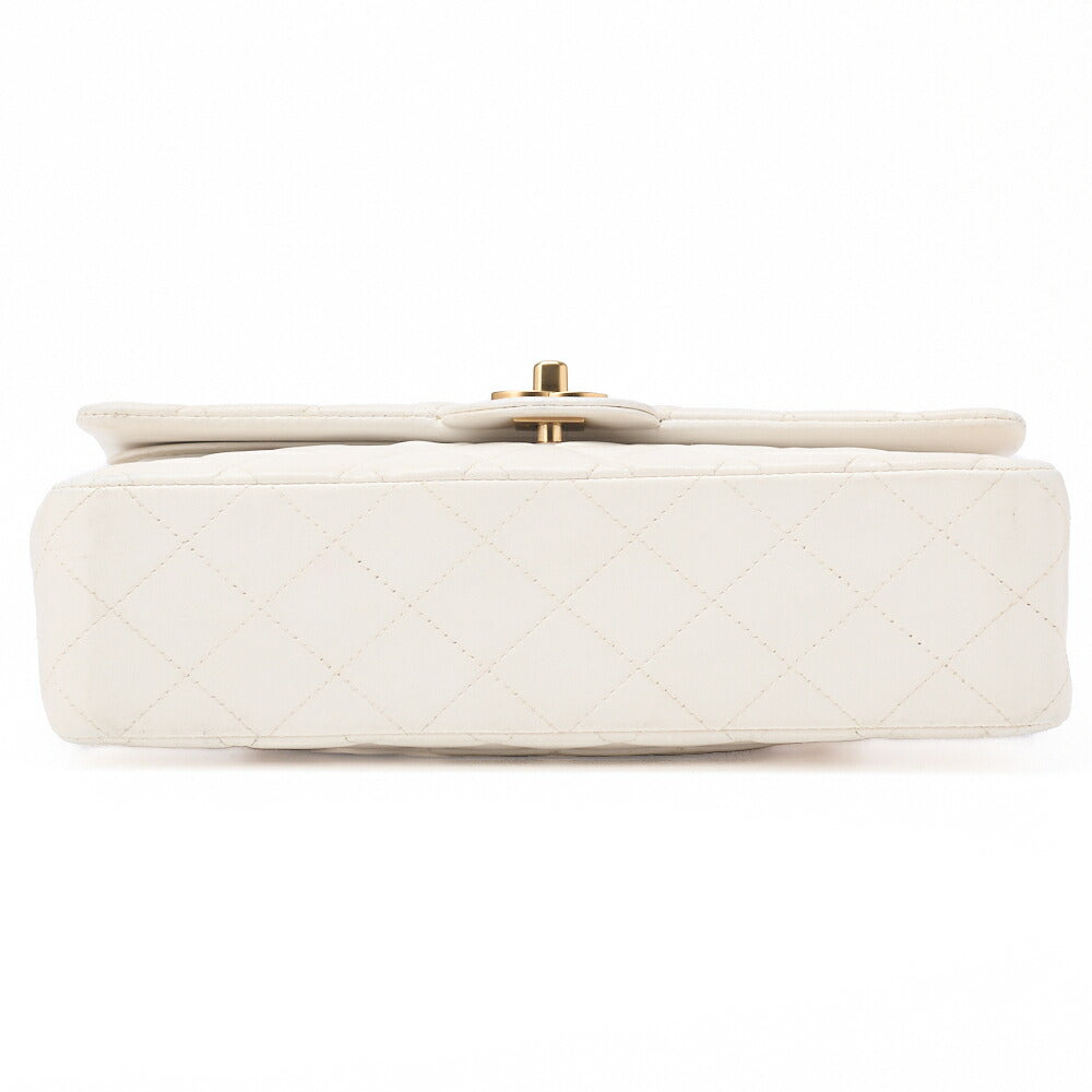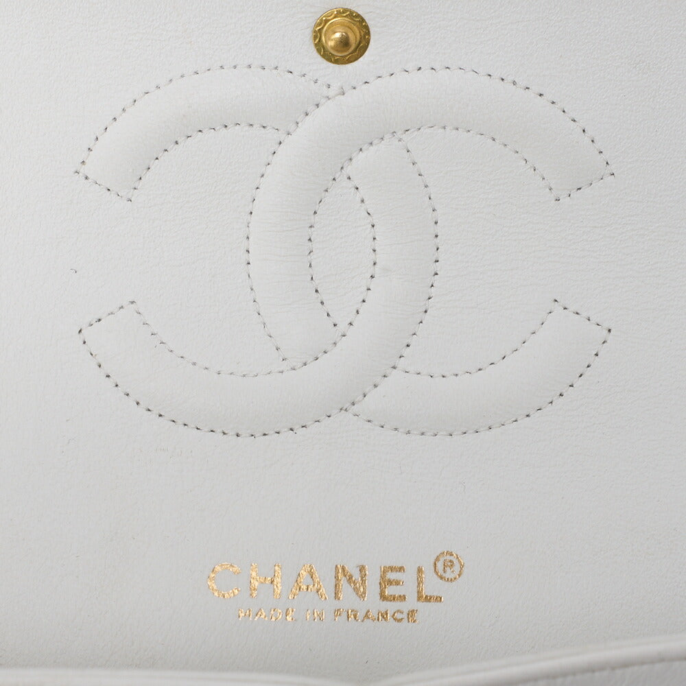 Pre-Owned Schultertasche Matelassé Doppelklappe Lammleder Weiß Goldfarbene Hardware Pre-Owned