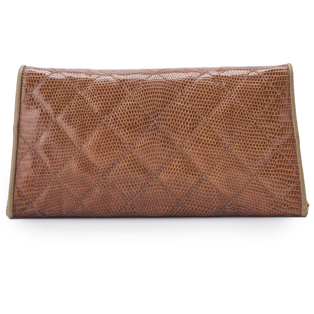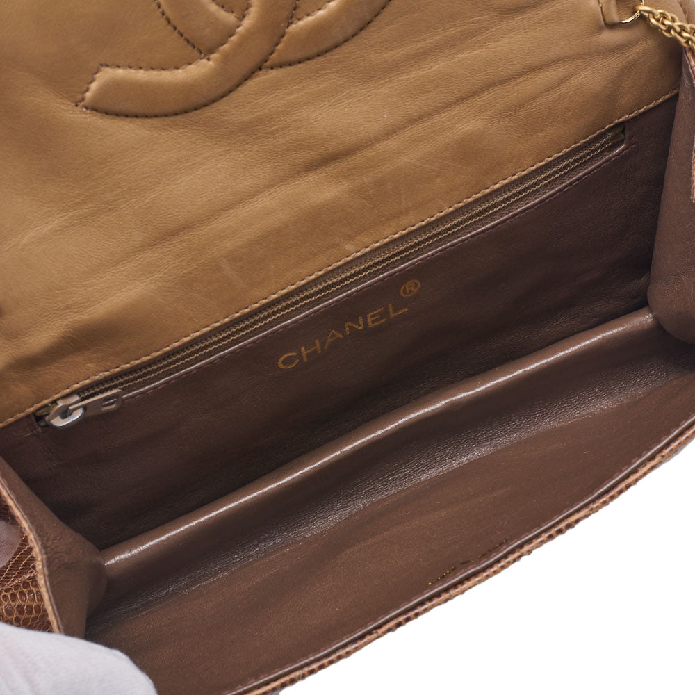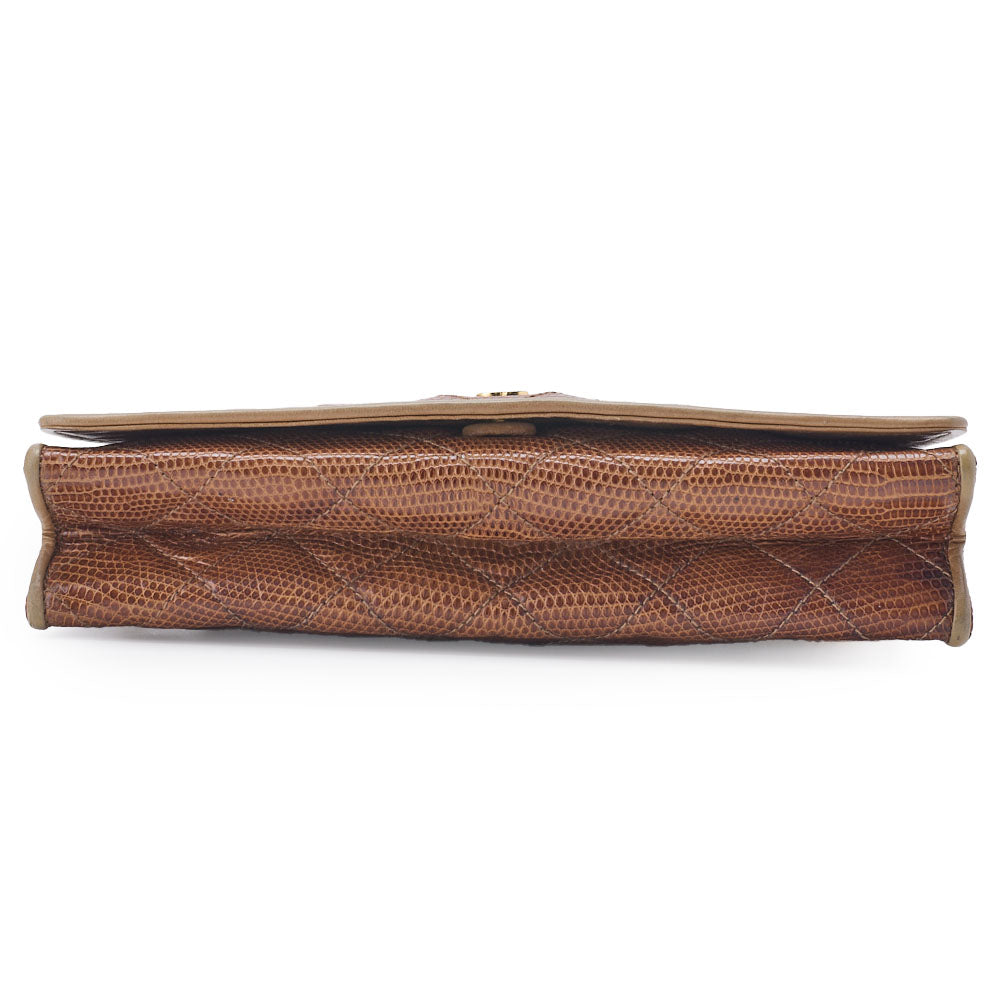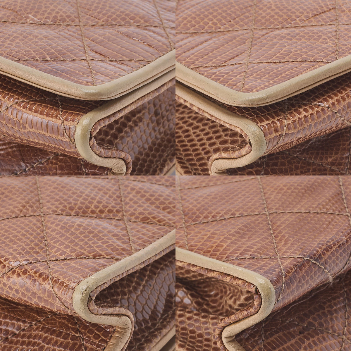 Pre-Owned Umhängetasche Matelassé Full Flap Push Lock Lizard Beige Gold-Tone Hardware Pre-Owned
