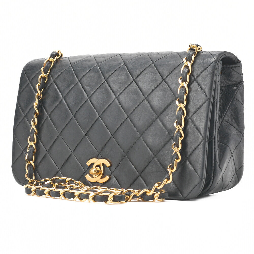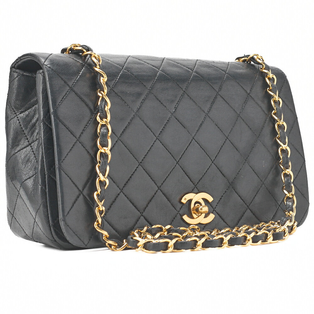 Pre-Owned Schultertasche Matelassé Lammleder Schwarz Goldfarbene Hardware Pre-Owned