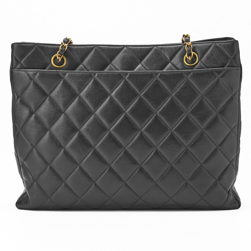 Pre-Owned Schultertasche Matelassé Drehverschluss Doppelkette Lammleder Schwarz Goldfarbene Hardware Pre-Owned