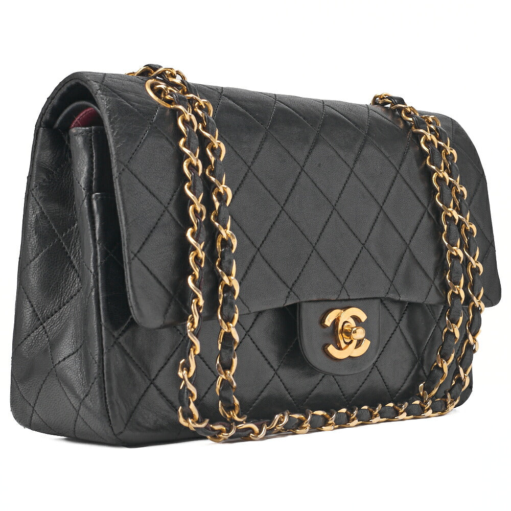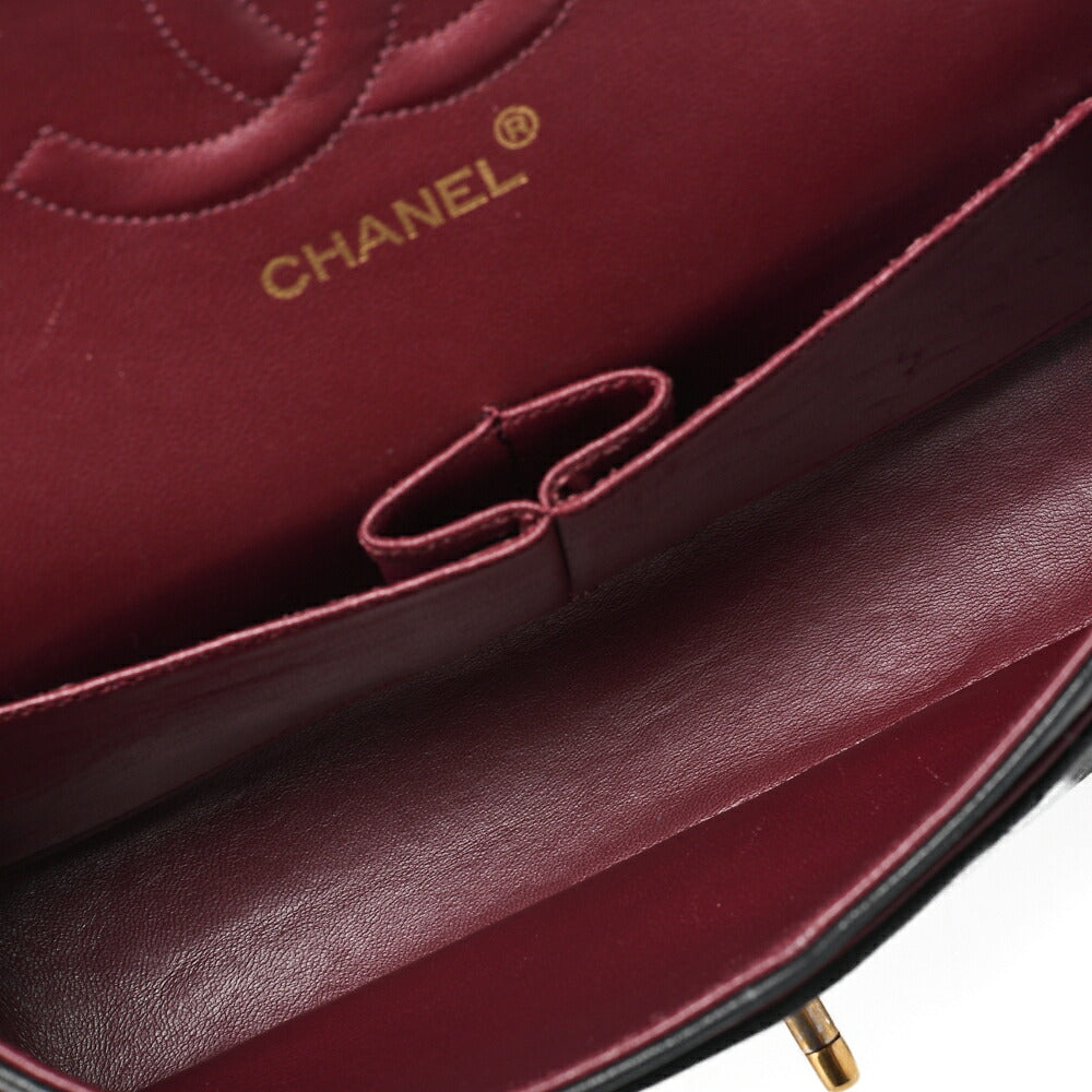 Gebrauchte Umhängetasche Matlasse Double Flap 25cm Chain Shoulder Lammleder Schwarz Gold Goldfarbene Hardware, Gebraucht