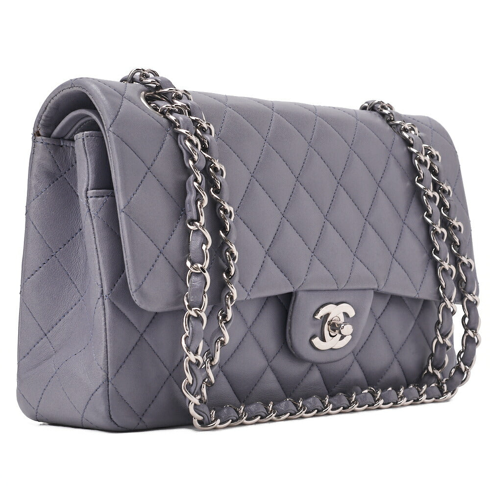 Gebrauchte Umhängetasche Matlasse Double Flap 25cm Kette Schulter Lammleder Lila Silberfarbene Hardware, Gebraucht