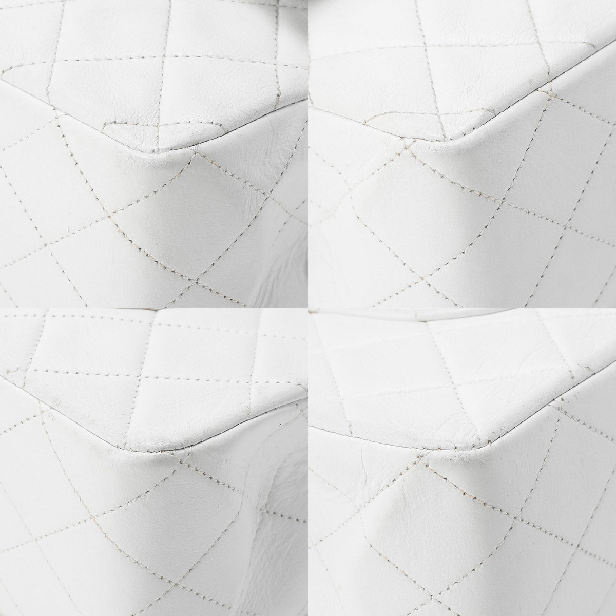 Pre-Owned Shoulder Bag Matelassé Double Flap 25cm Chain Shoulder Lambskin White Gold-Tone Hardware, Pre-Owned
