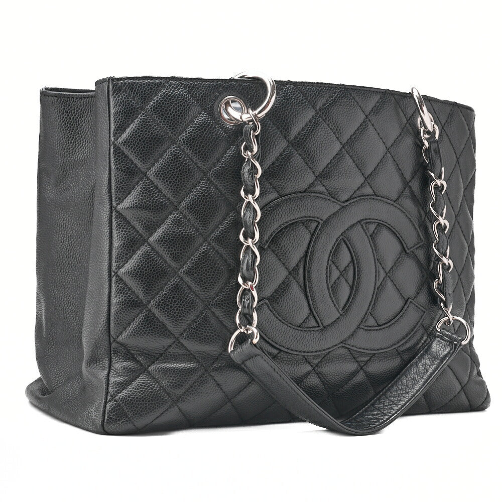 Pre-Owned Shoulder Bag Matlasse GST Chain Tote Caviskin Black Silver Fittings Women's Bag Brand